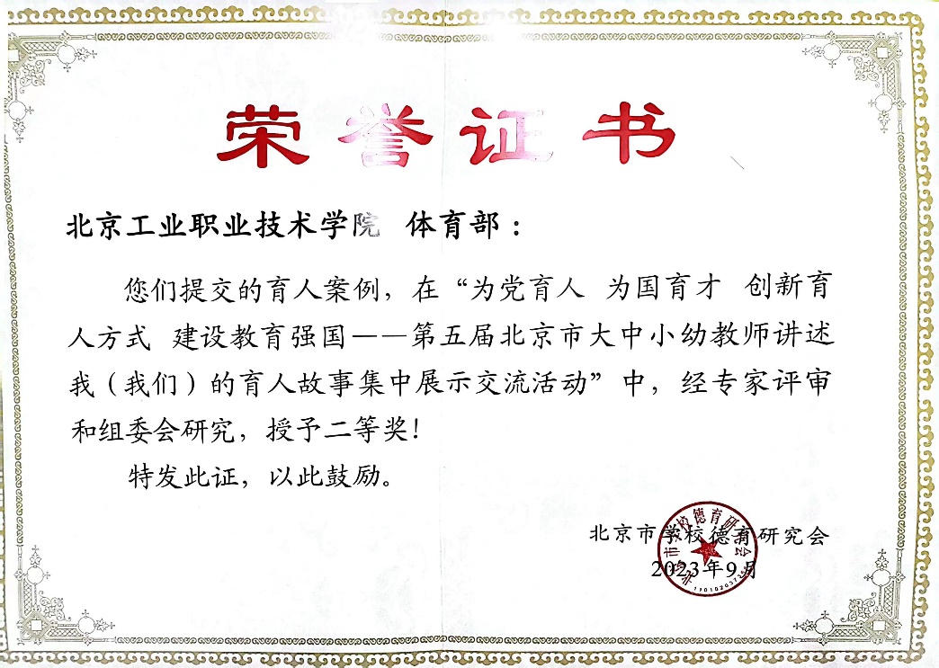 在第39个教师节前夕,9月9日,由北京市委教育工委、市教委主办,市爱体育手机官方网站入口德育研究会承办的第五届北京市大中小幼教师讲述我(我们)的育人故事展示交流活动隆重举办,来自全市大中小幼不同学段的教师代表同台讲述、分享他们生动的育人故事。活动现场,公布了本届育人故事的获奖名单,我校张亚英老师荣获一等奖,体育部荣获二等奖。