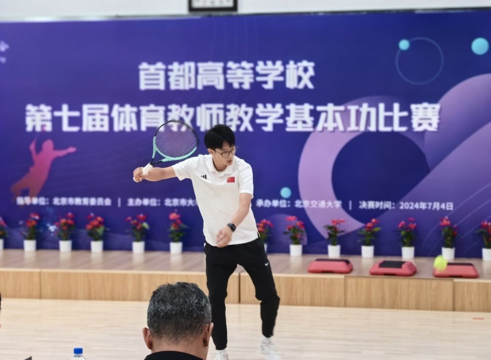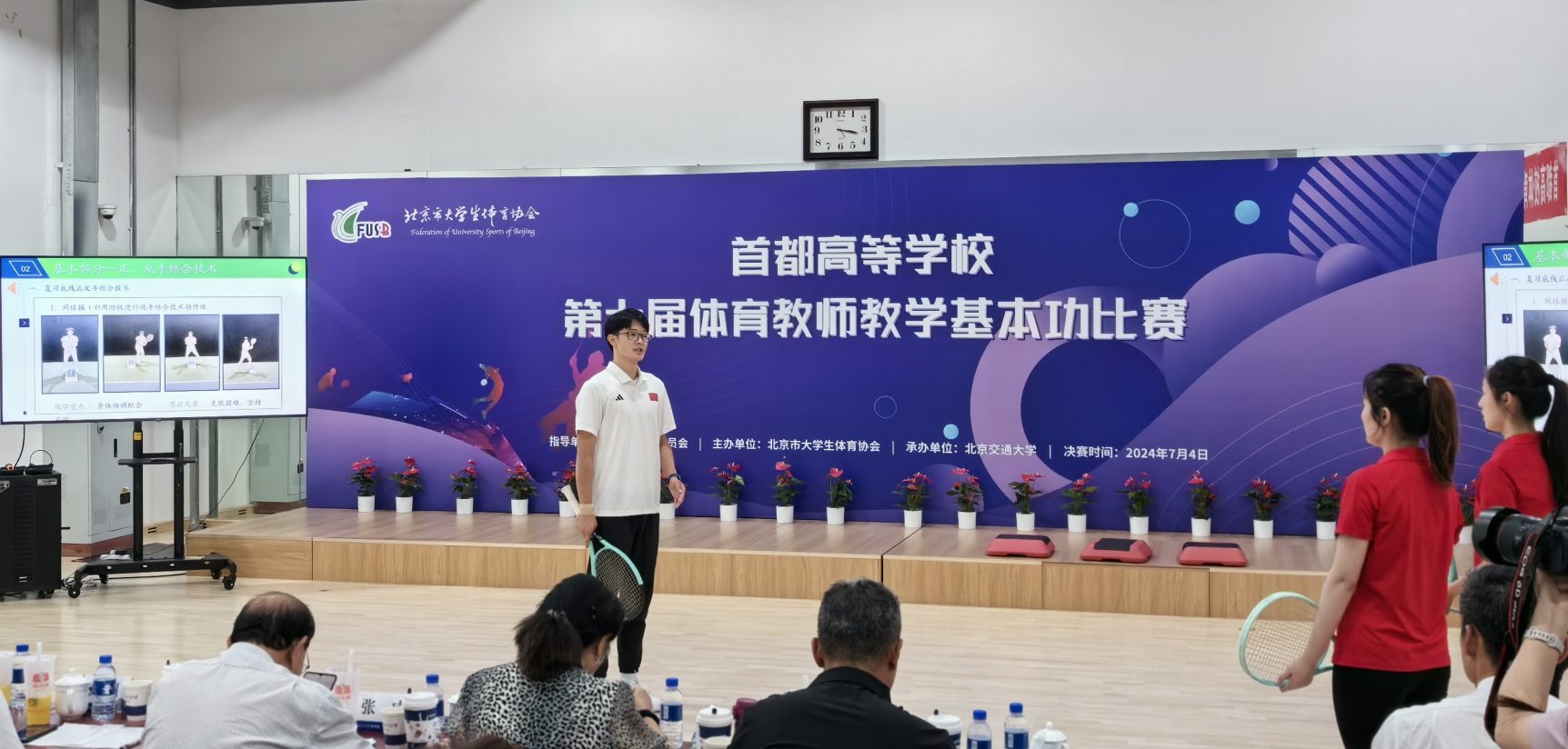 2024年7月4日,首都高校第七届体育教师教学基本功比赛在北京交通大学综合体育馆举行,共有来自27所高校的27名体育教师参赛,我校体育部青年教师张宇頔喜获二等奖。