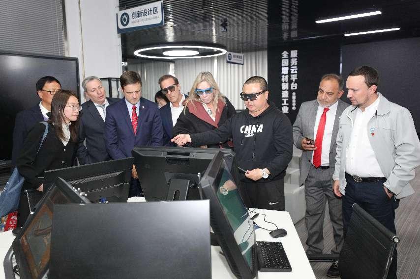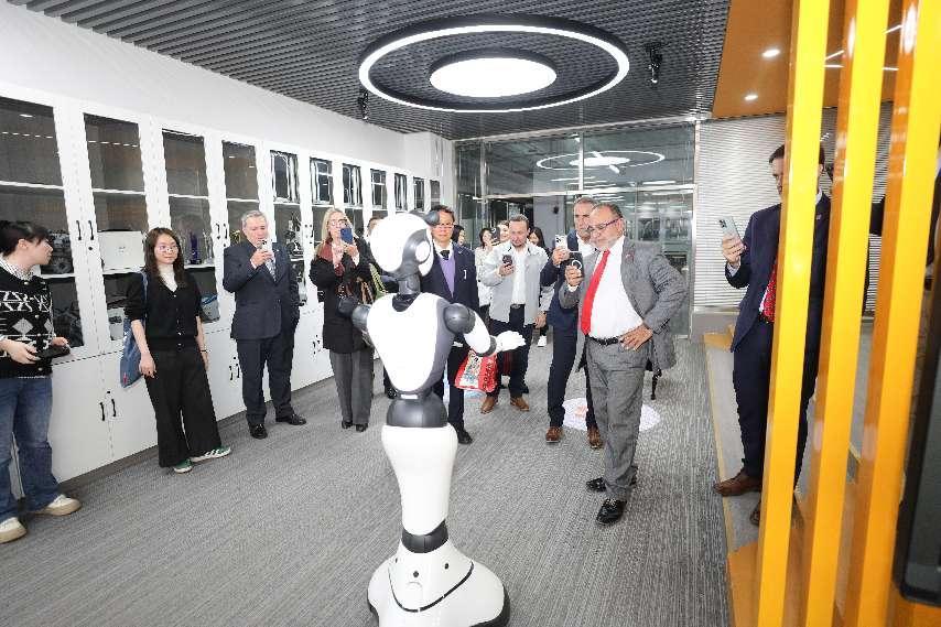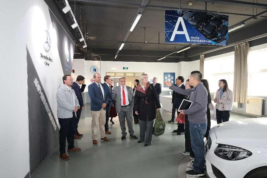 访华团在高世吉的陪同下参观了我校中法能效人才培养与研究中心、汽车实训中心、3D打印实训中心、智能机器人实训中心以及智慧工地实训中心等,对我校理实一体化的教学模式和优质的实训条件给予高度赞赏和充分肯定。