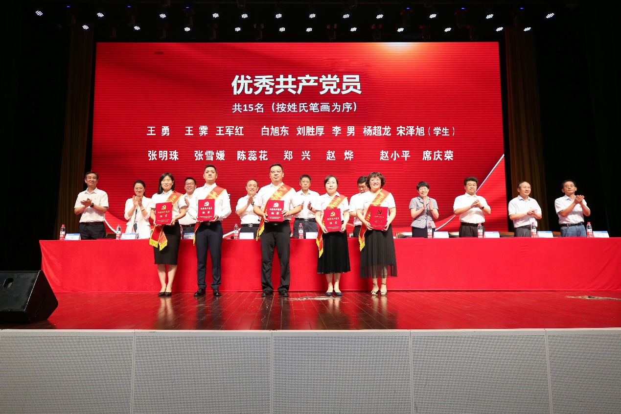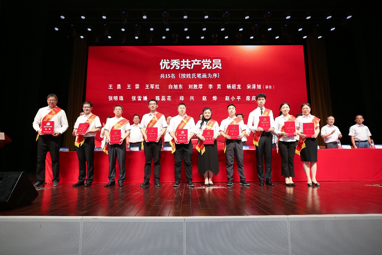 校党委常委为获奖的集体和个人颁奖。