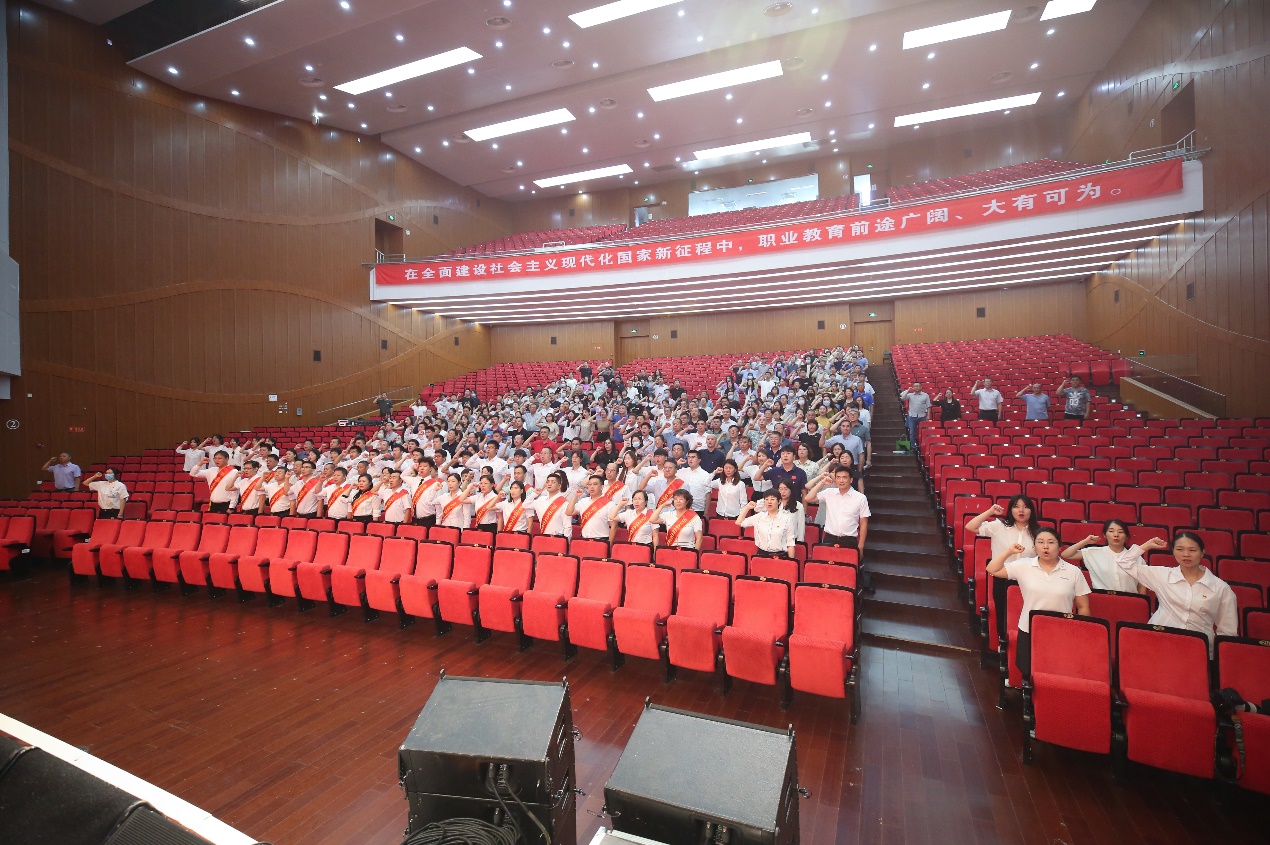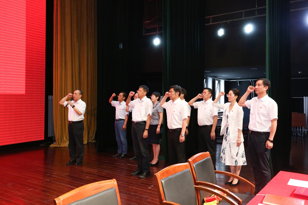 大会在全体党员齐唱《国歌》的嘹亮歌声中拉开帷幕,随后,在党委副书记魏晓东的带领下,全体党员面对党旗,高举右拳,进行新党员宣誓、老党员重温入党誓词仪式。