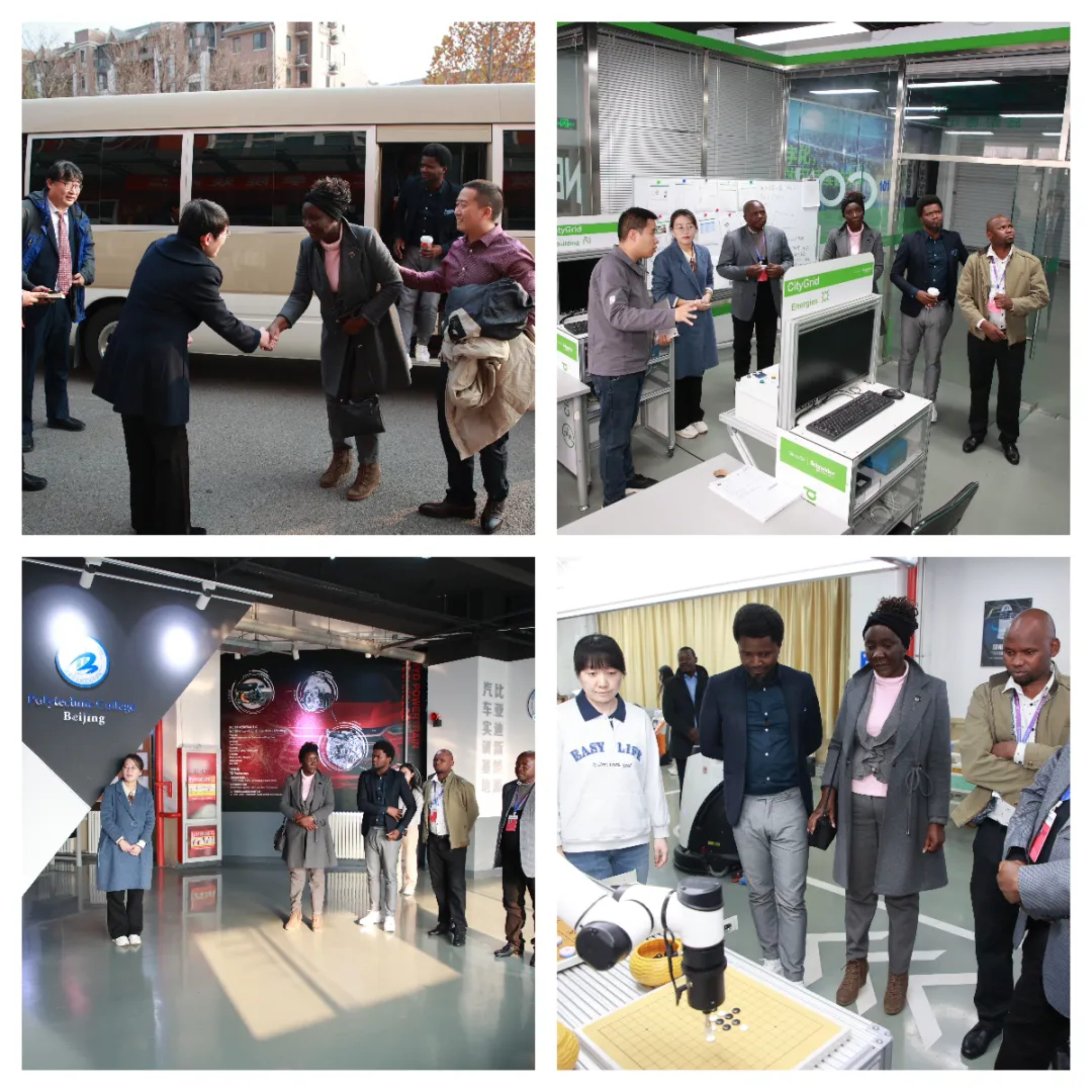 姆希巴、克里奥帕斯等一行在周燕、宋凯的陪同下依次参观了中法能效管理应用人才培养与研究中心、汽车实训基地、数字化设计与制造中心、智能机器人技术应用中心以及科大讯飞AI工坊等,对我校理实一体化的教学模式和优质的实训条件给予高度赞赏和充分肯定。