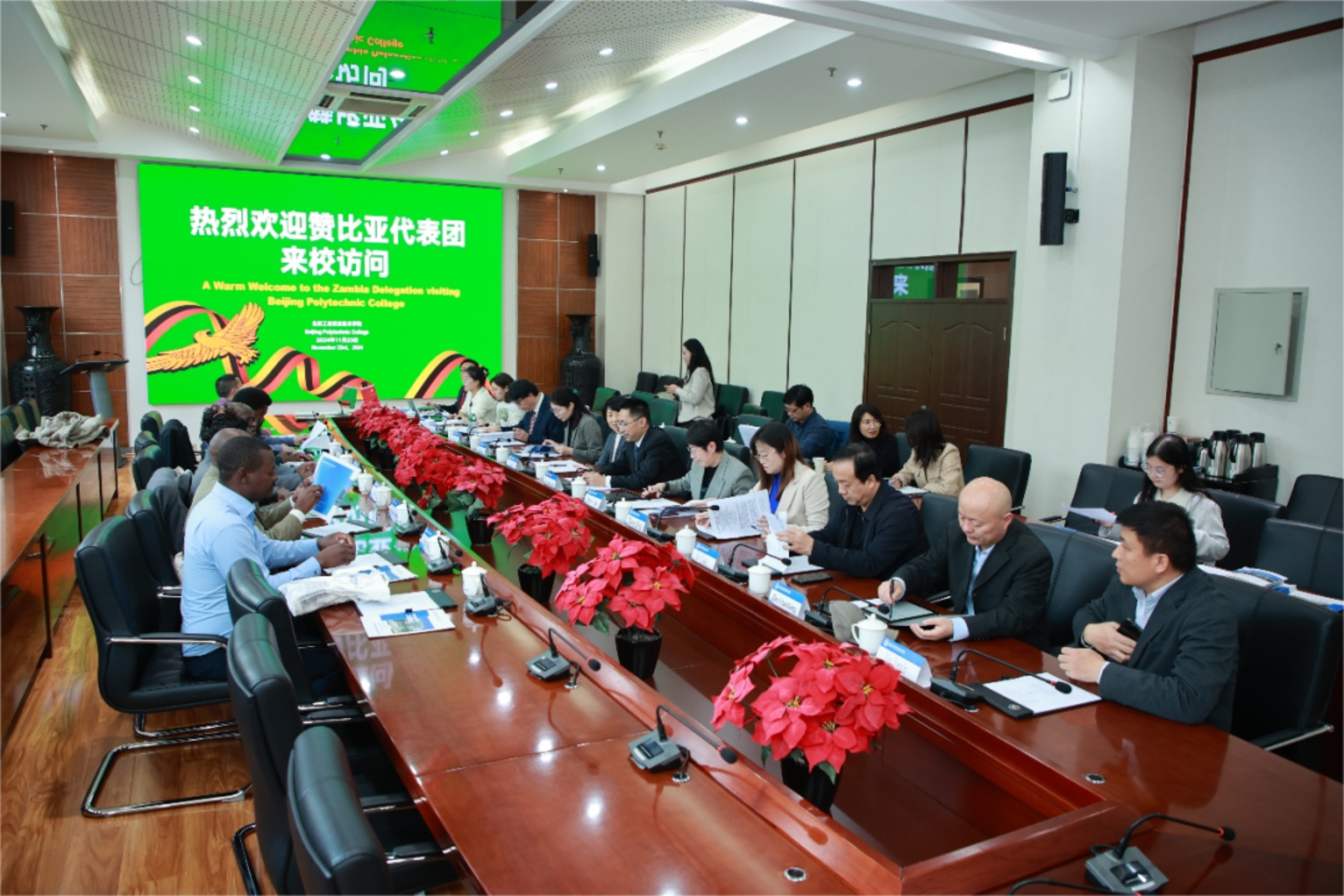 徐建姝代表北京市教委向姆希巴司长一行表示了热烈欢迎和衷心问候。她提到,近年来,围绕共建“一带一路”,市教委积极支持校企合作,稳步推动高校境外办学,推进职业教育和中文教育协同发展。北工院作为北京市优秀职业院校代表,是中国最有影响力的职业院校之一,在赞比亚参与建成中赞职业技术学院和职业教育型孔子课堂,为赞比亚青年发展和技术技能人才培养作出了贡献。未来,北京市教委将以更加开放的姿态、更加务实的举措,推动中赞双方不断深化职业教育领域合作,共同培养更多高水平国际化技术技能人才。北京市教委也推出了多项留学便利政策,倾力打造“留学北京”品牌,欢迎更多赞比亚优秀学生来到中国,来到北京学习生活和工作,搭建交流的桥梁,成为两国友谊的使者。