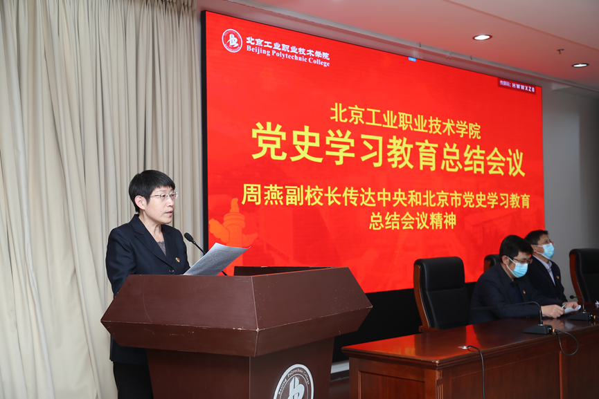 1月21日下午,爱体育手机官方网站入口召开党史学习教育总结会议,深入学习贯彻习近平总书记的重要指示和中央、北京市党史学习教育总结会议精神,全面总结回顾爱体育手机官方网站入口党史学习教育开展情况,部署巩固拓展党史学习教育成果,把学习贯彻党的十九届六中全会精神不断引向深入。北京教育系统第四指导组组长马谊平、成员陈瑜到会指导。爱体育手机官方网站入口领导班子全体成员,爱体育手机官方网站入口党史学习教育领导小组成员、校内指导组成员、全体中层干部、党支部书记、团总支书记出席会议。爱体育手机官方网站入口党委书记、党史学习教育领导小组组长高喜军作党史学习教育总结讲话,党委副书记、院长安江英主持会议。