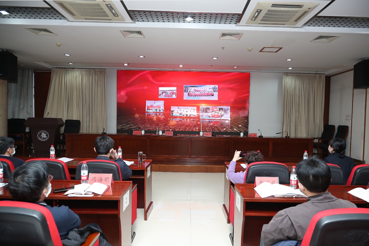 与会人员共同观看爱体育手机官方网站入口党史学习教育专题片《汲取百年党史奋进力量 书写立德树人新时代答卷》。