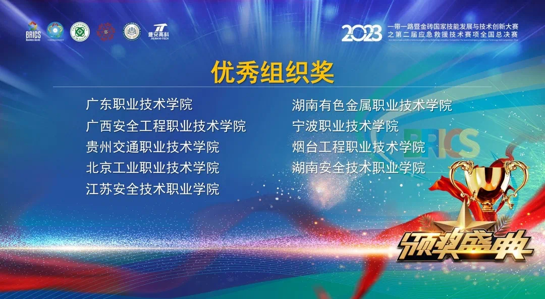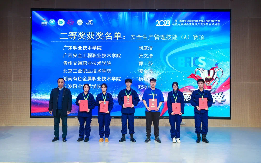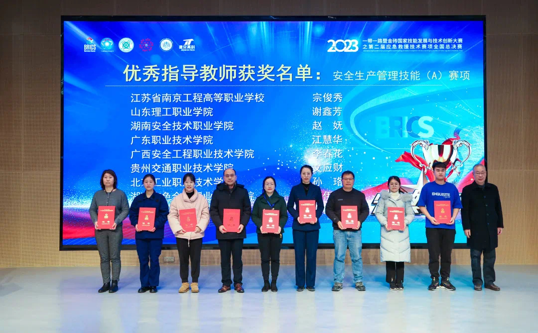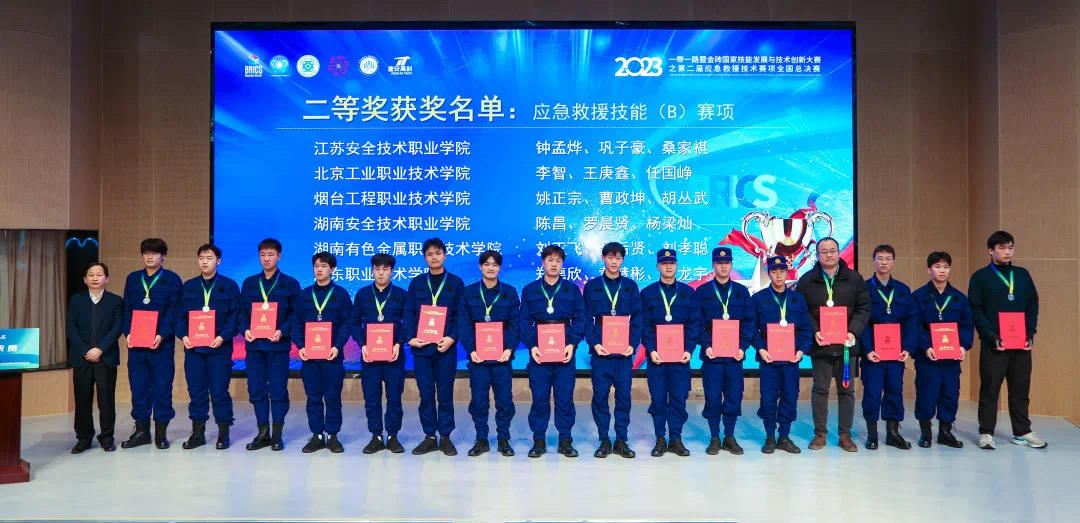 12月16-18日,2023一带一路暨金砖国家技能发展与技术创新大赛之第二届应急救援技术赛项全国总决赛在江苏南京举办,我校文法与管理学院孙珞、陈秀珍两位老师带领李智、王庚鑫、任国峥三位同学荣获应急救援技能(B)赛项二等奖,由孙珞老师指导的学生凌金瑞荣获安全生产管理技能(A)赛项二等奖,两位老师均获得优秀指导教师称号,我校获得优秀组织奖。