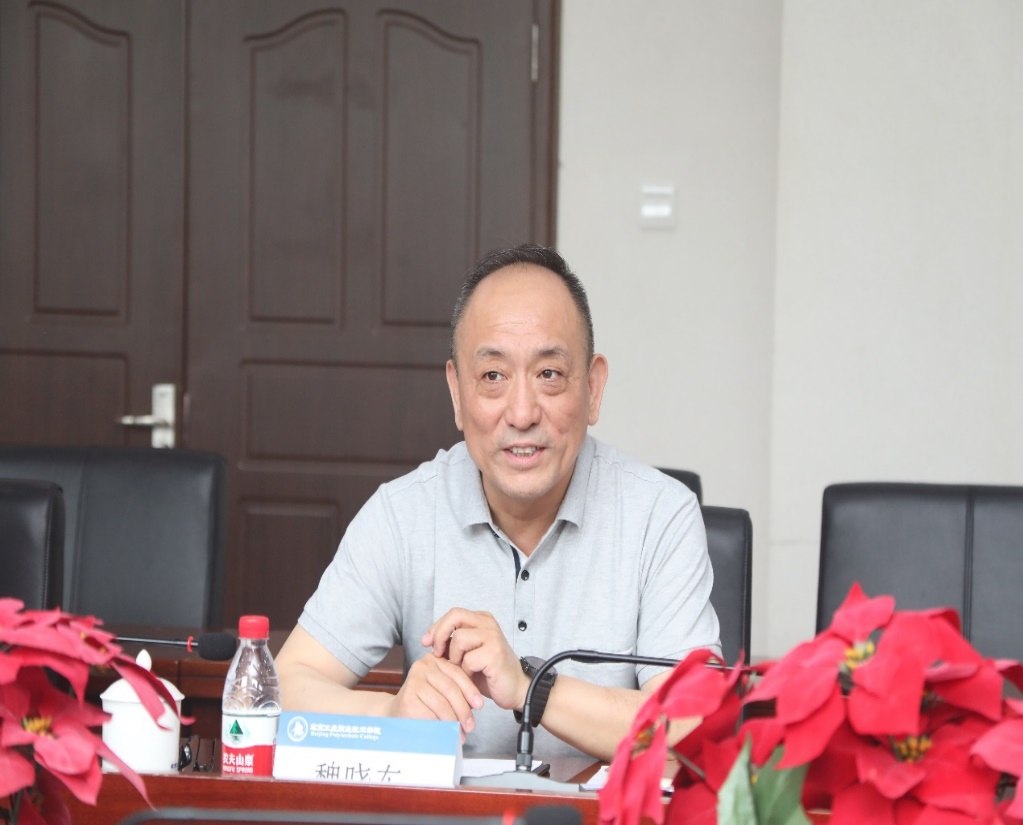 北京青年政治学院党委常委、副院长刘如赞简要介绍了北京青年政治学院的培训情况及特色专业,表示此次来访主要目的是学习我校社会服务收入绩效考核相关工作经验。