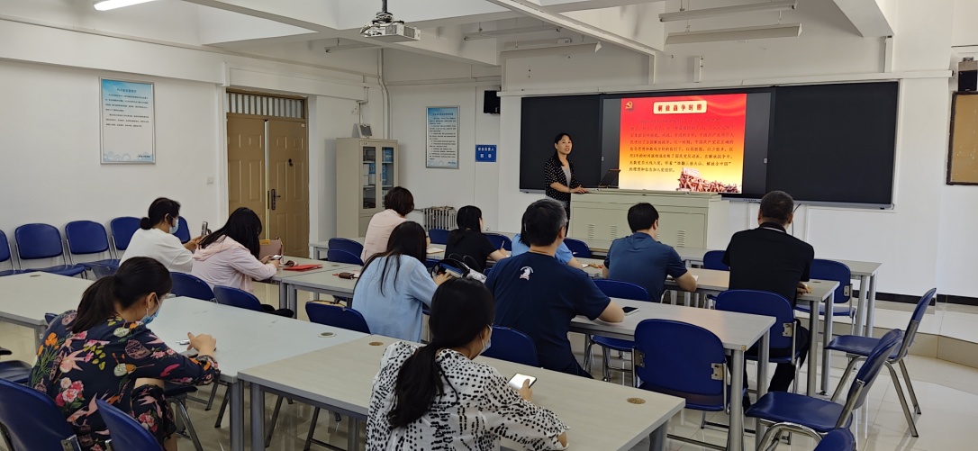 按照党史学习教育动员大会上习近平总书记提出的“学党史、悟思想、办实事、开新局”的总体要求,扎实推进党史学习教育,2021年6月18日,机电党支部书记黄宇婷在博学楼202,以“重温入党誓词,永远忠诚于党”为主题,从“入党誓词的历史沿革”和“牢记入党誓词,永远忠诚于党”两个方面为支部党员讲党课。
