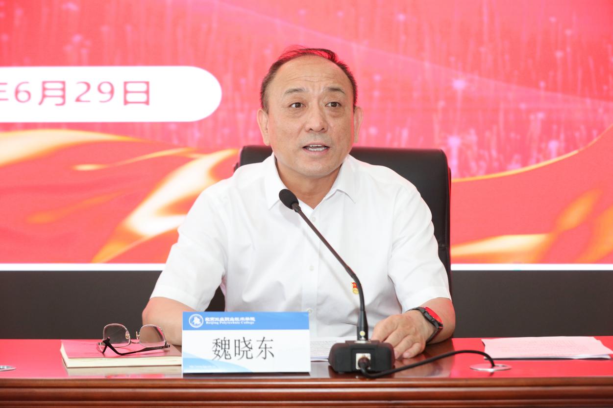 为做好毕业生党员离校前教育,进一步引导学生党员坚定理想信念,强化党性修养,激发使命担当,2023年6月29日上午,我校在匠心楼三层报告厅举办了“忆初心 重温誓词 别母校 再踏征程”—2023届毕业生党员离校教育暨宣誓仪式。党委书记、党校校长高喜军,党委副书记、党校常务副校长魏晓东出席会议。党委常委、组织部长、统战部长苗耀华,学生工作处处长梁文学、团委书记郑兴、二级学院党总支书记、副书记及81名毕业生党员参加了此次仪式。仪式由魏晓东副书记主持。