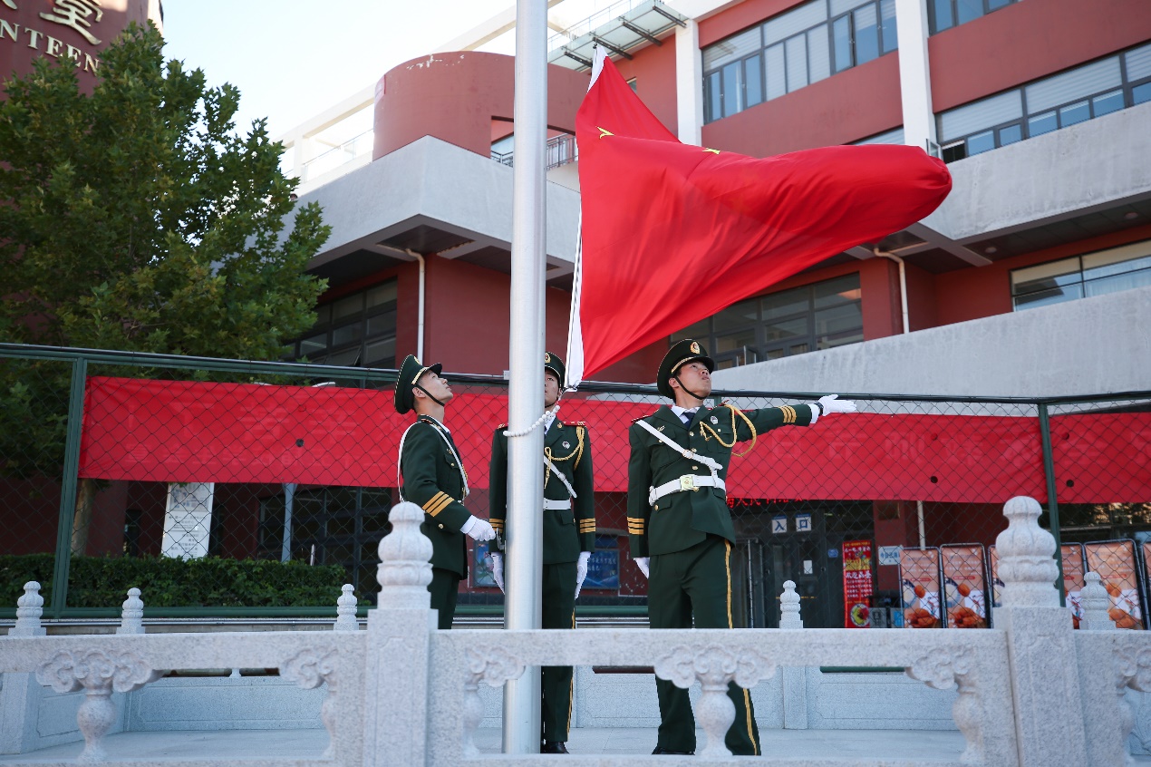 在雄壮的国歌声中,全场肃立,五星红旗徐徐升起,在蓝天白云中迎风飘扬。师生在国旗下矗立,在国歌中昂首,共同迎接新学期的精彩起航。