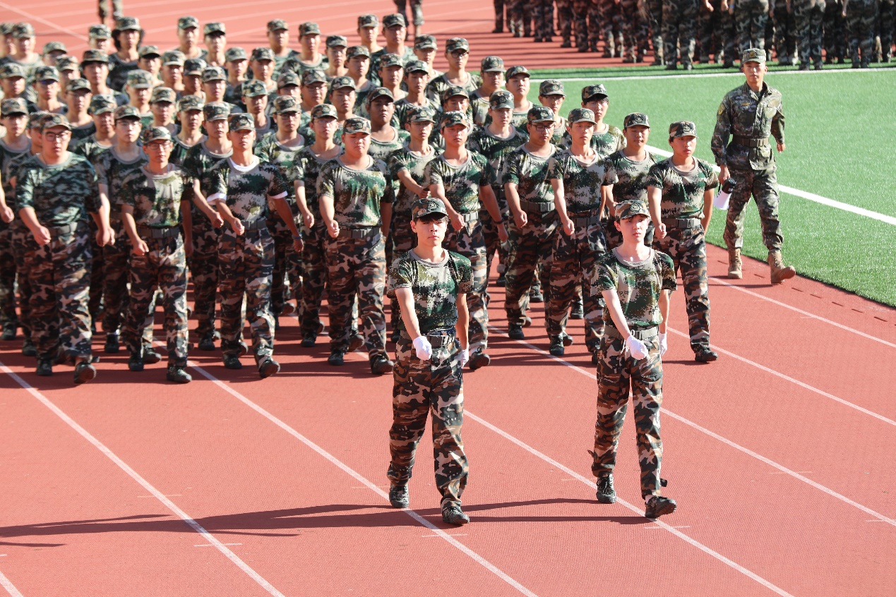 在嘹亮的军乐进行曲中,分列式五个营队迈着铿锵的步伐依次从主席台前踏过,英姿挺拔的标兵似屹立的白杨,整齐划一的排面,阳光下淌过汗水的脸颊,褪去了年少的懵懂。