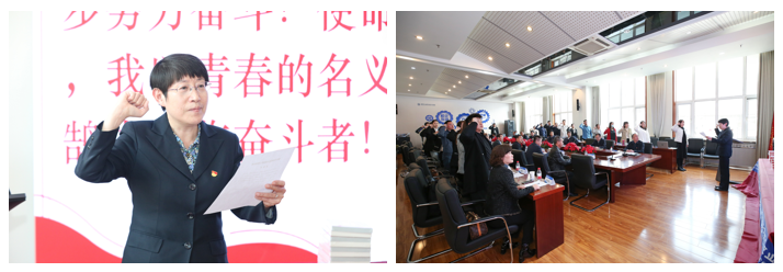 高喜军书记向学员代表授旗。周燕副院长宣读学员名单,并带领全体学员庄严宣誓。