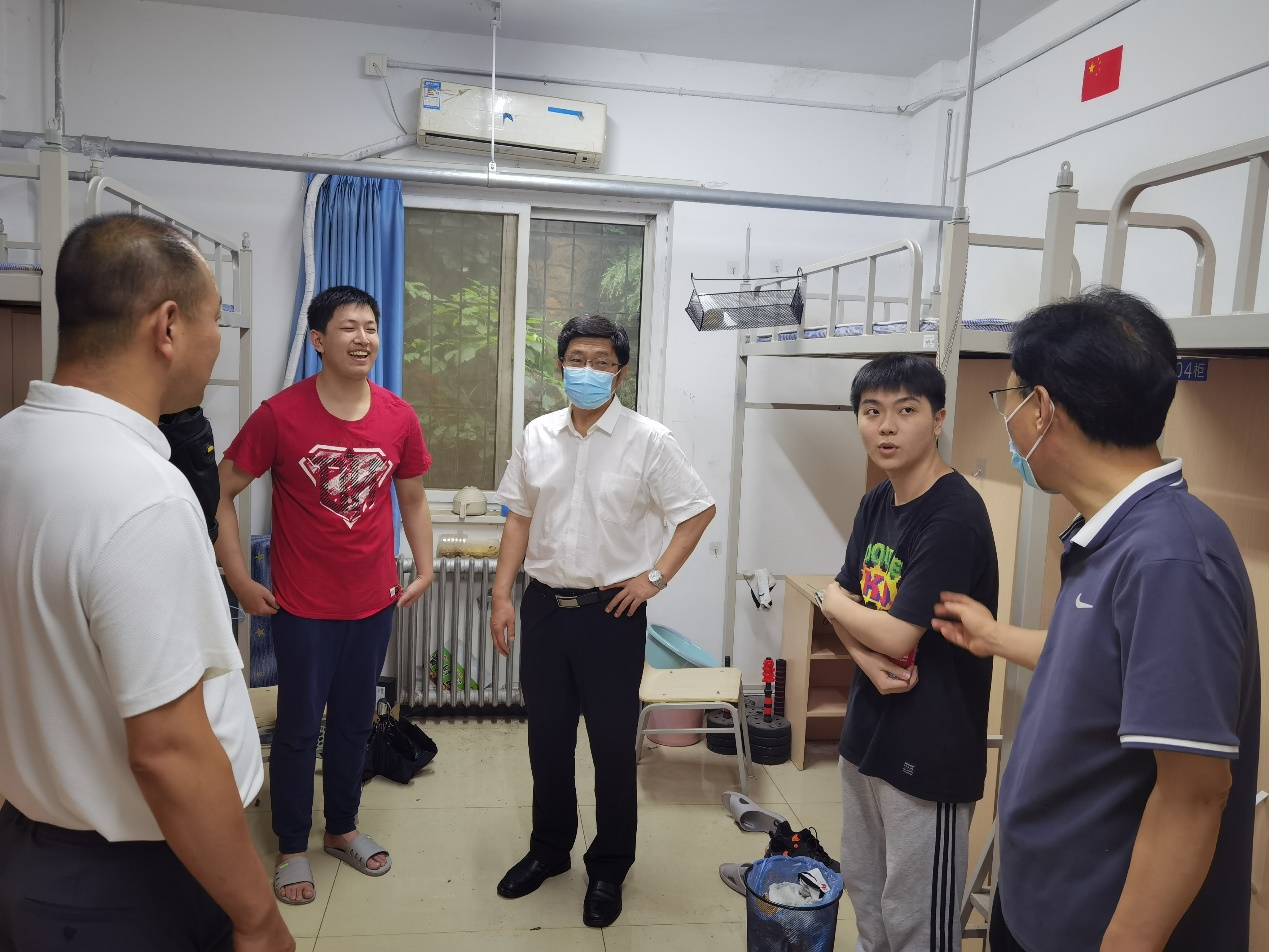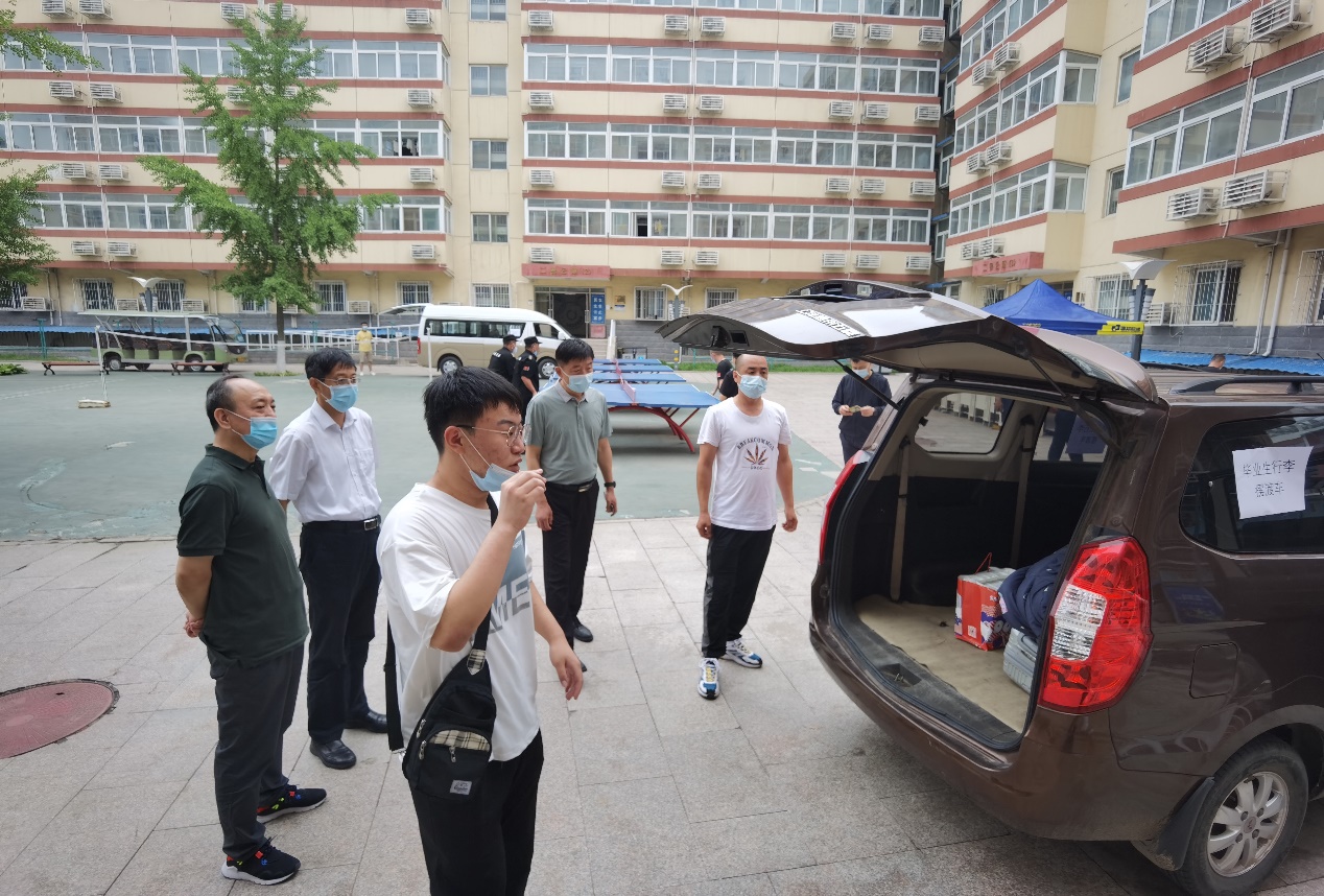 高喜军书记、安江英院长、魏晓东副书记分别到学生寝室,看望行李打包的学生和班主任。询问了毕业生就业情况,亲切慰问了帮助学生收拾、托运行李的班主任。