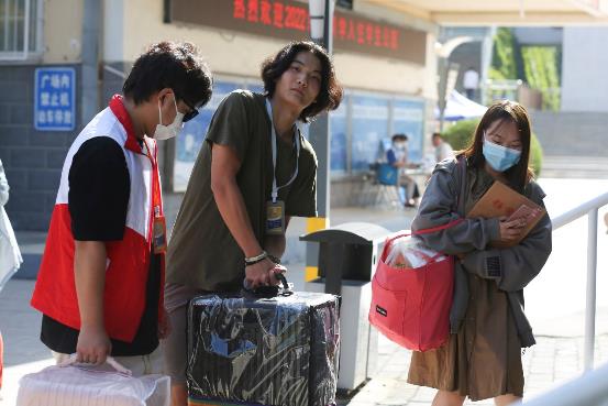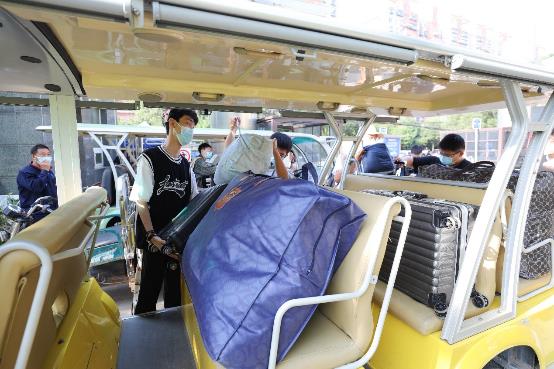 穿着马甲的志愿者们大显“神”通:管带路、拿行李、扛大包。“滴滴滴”校园摆渡车有序运转,这一程,我为你保驾护航。
