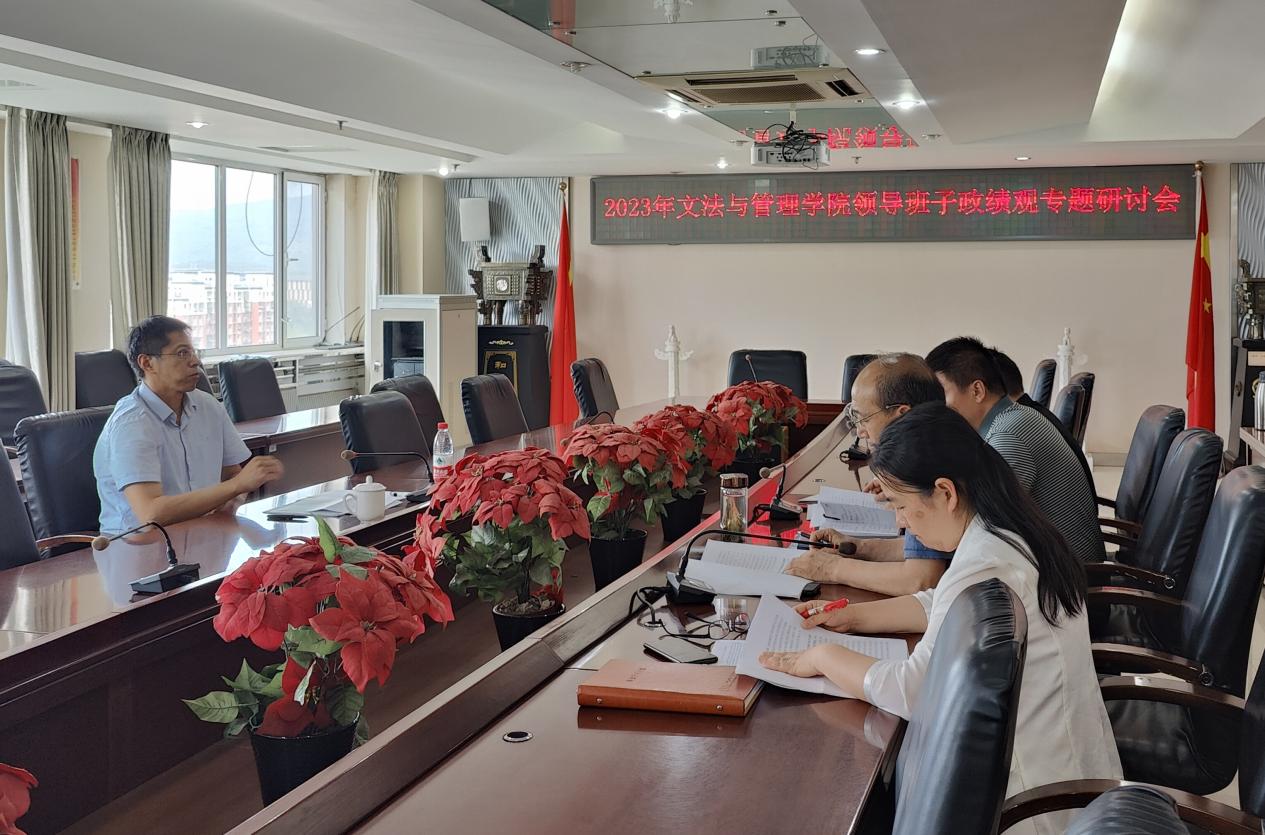 6月25日下午,文法与管理学院在第一会议室召开了领导班子主题教育树立和践行正确政绩观专题研讨会。党委书记高喜军作为联系校领导参会指导。会议由文法与管理学院党总支书记刘建新主持,班子成员参加研讨。