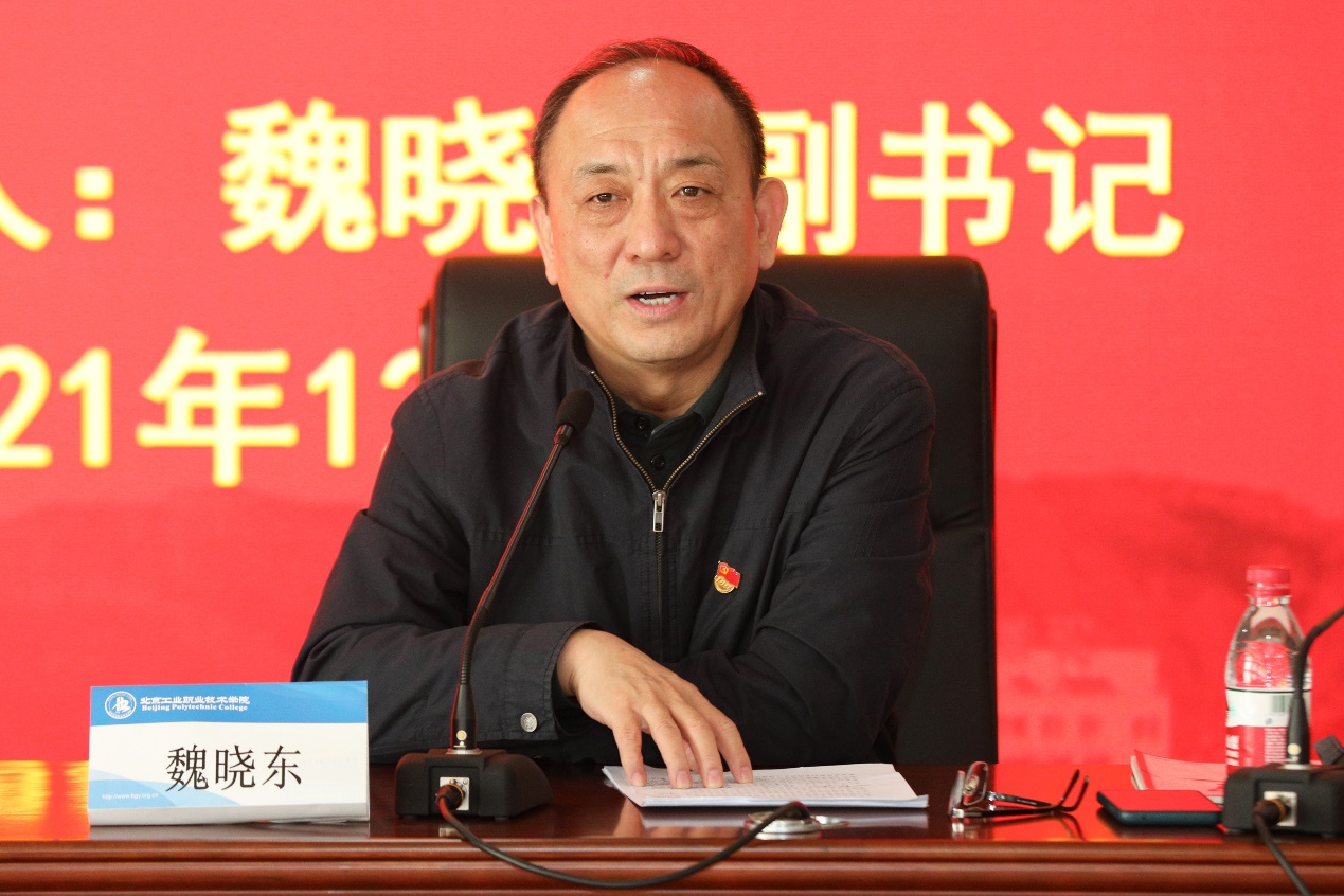 魏晓东副书记要求在教育教学工作中联系实际,践行和落实十九届六中全会精神做到“三个结合”。一是要结合百年奋斗、百年成就引领立德树人根本任务落地见效。二是要结合人民至上思想树立一切为学生成长成才的服的宗旨。三是要结合初心使命指引为实现国际一流职业院校而努力奋斗。