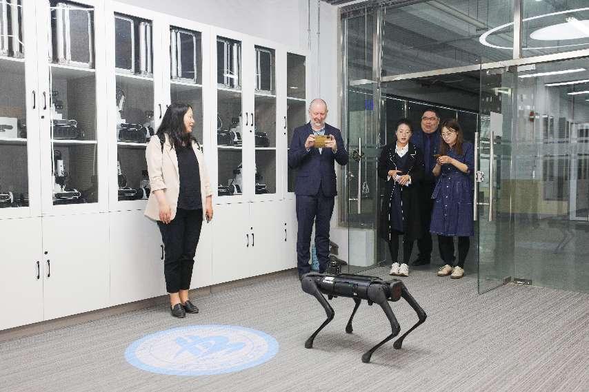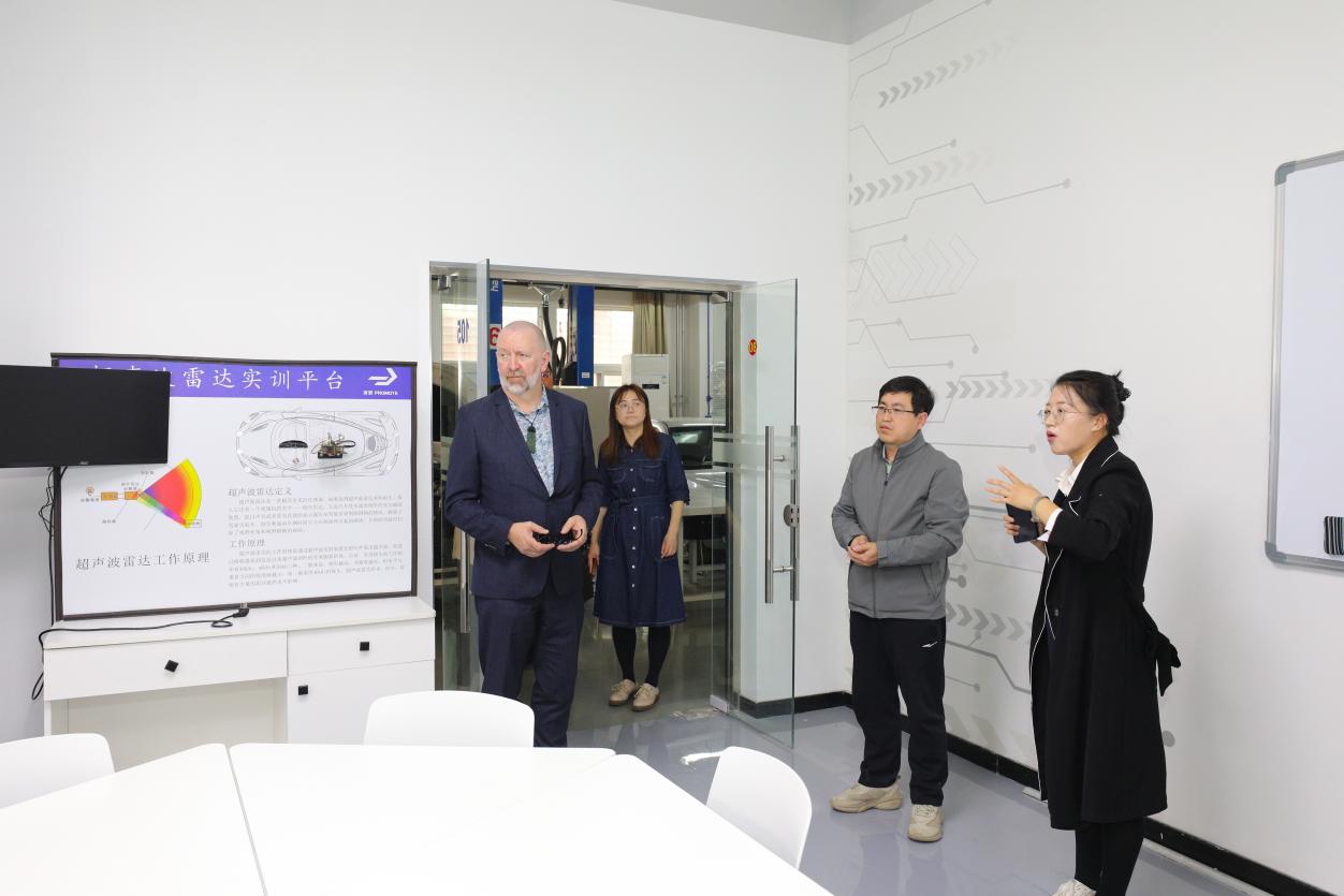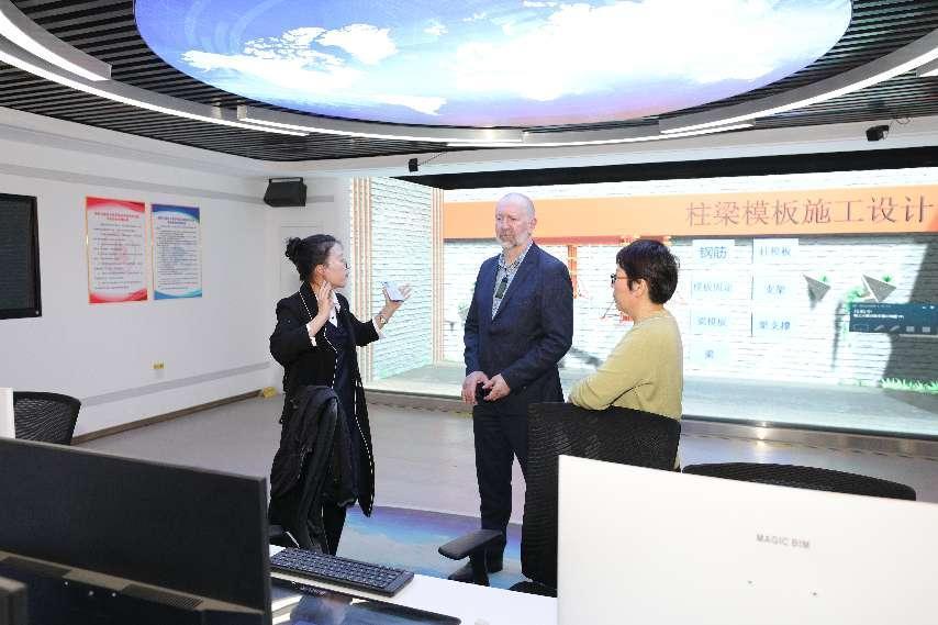 来访客人在国际处处长孟晴的陪同下参观了我校中法能效应用人才培养与研究中心、汽车实训中心、智能机器人实训室、BIM实训中心、智慧工地实训中心等,对我校理实一体化的教学模式和优质的实训条件给予高度赞赏和肯定。