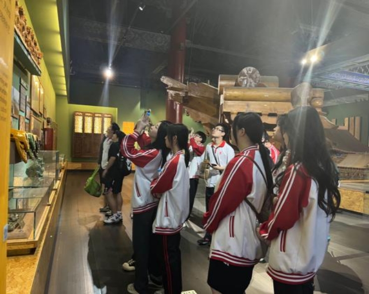 文综组的活动以“守护匠心 传承非遗”为主题,分为四大项:“非遗手工体验”项目通过“非遗剪纸·龙腾盛世”“掐丝珐琅·指尖上的非遗”“水墨·手绘折扇”活动,让学生在了解中国优秀传统文化的同时,亲手制作非遗手工作品,领略非遗之美;“圆明园遗址公园”作为“万园之园”和著名历史遗址,学生在游学中学习圆明园的地理知识、历史演变和文化背景,在领略中华园林宏伟与精致的同时,接受爱国主义教育的深刻熏陶;在“强国有我·爱国主题教育”活动中,学生通过观影《我和我的祖国》,分享爱国感想,重温祖国的峥嵘岁月;“拼图·建筑与名画”活动让学生通过拼图的方式,重温历史建筑与国宝名画,既锻炼动手能力和团队协作精神,也加深了对中华文化的热爱与认同。