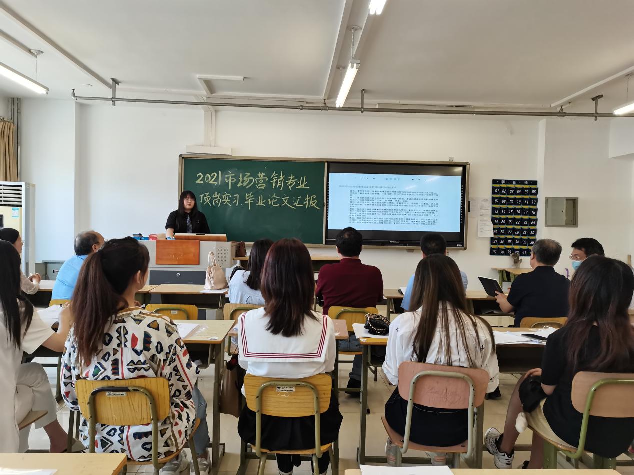 此次学生答辩汇报内容共分成两个部分:一部分是介绍自己的顶岗实习单位岗位、工作职责、实习收获及对爱体育手机官方网站入口专业的建议;另一部分则是介绍自己毕业论文的选题意义、写作思路、主要内容及研究结论。汇报之后评审教师就学生汇报的内容进行提问,指出学生在论文写作中的不足和修改的方向,就学生的升学和就业发展提出宝贵建议。