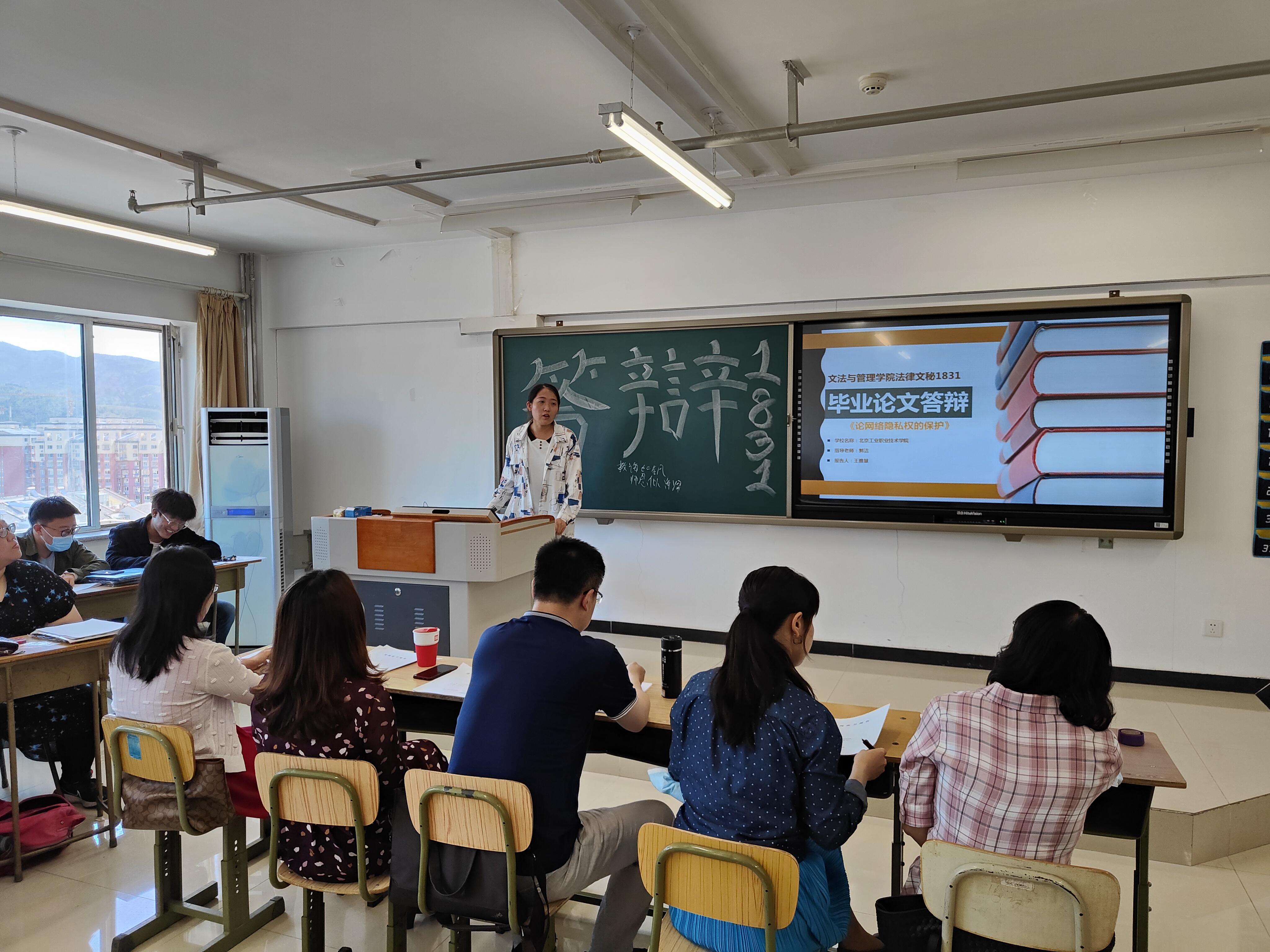 2021年6月11日上午,文法与管理学院在匠心楼分专业举行了2021届毕业生顶岗实习与毕业论文答辩会。副校长刘兰明、教务处处长薄志毅、副处长王军红、文法与管理学院院长许保国、副院长黄玉芬等领导莅临指导,参加了部分专业的答辩会。安全技术管理、法律事务、法律文秘、会计、电子商务、市场营销、工商管理、旅游管理、空中乘务等9个专业13个班级的全体毕业生均参加并聆听了本专业的汇报答辩。
