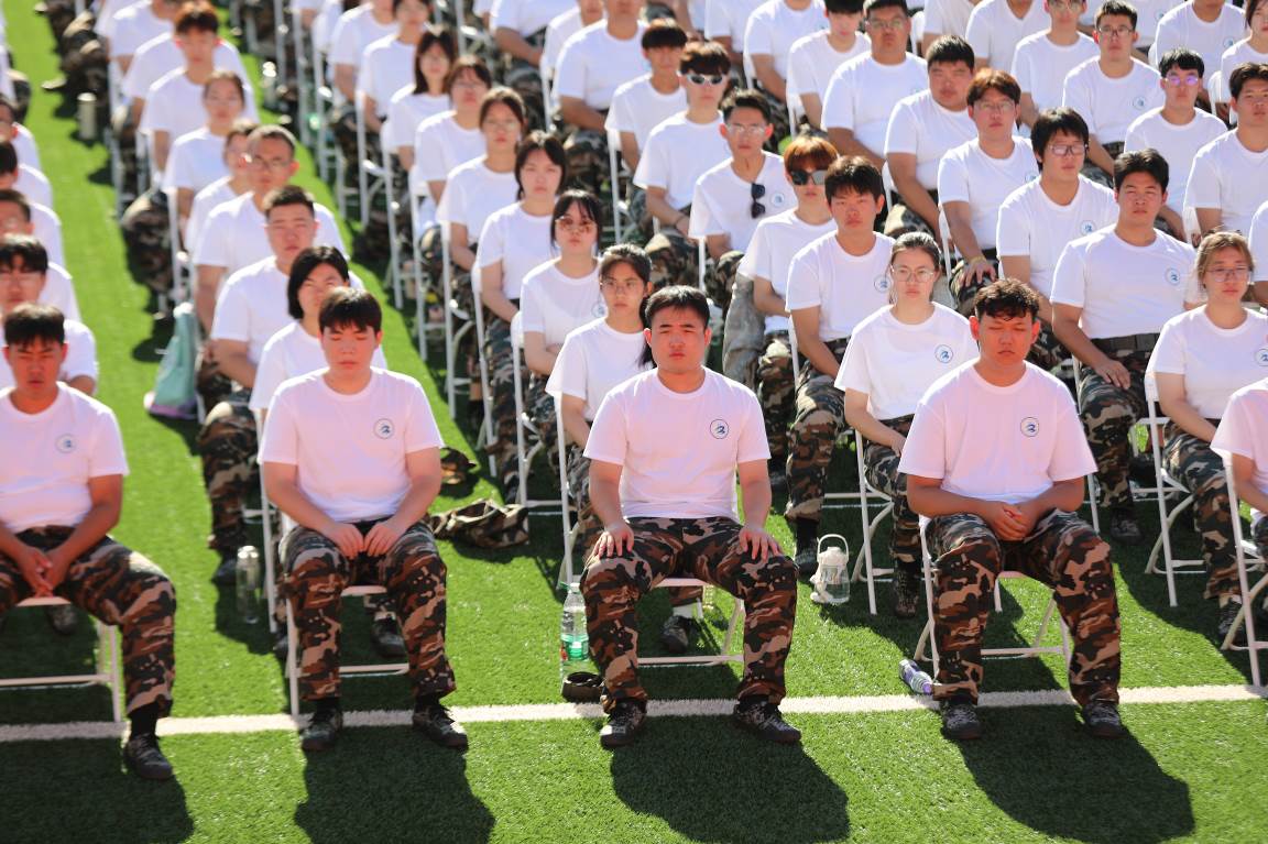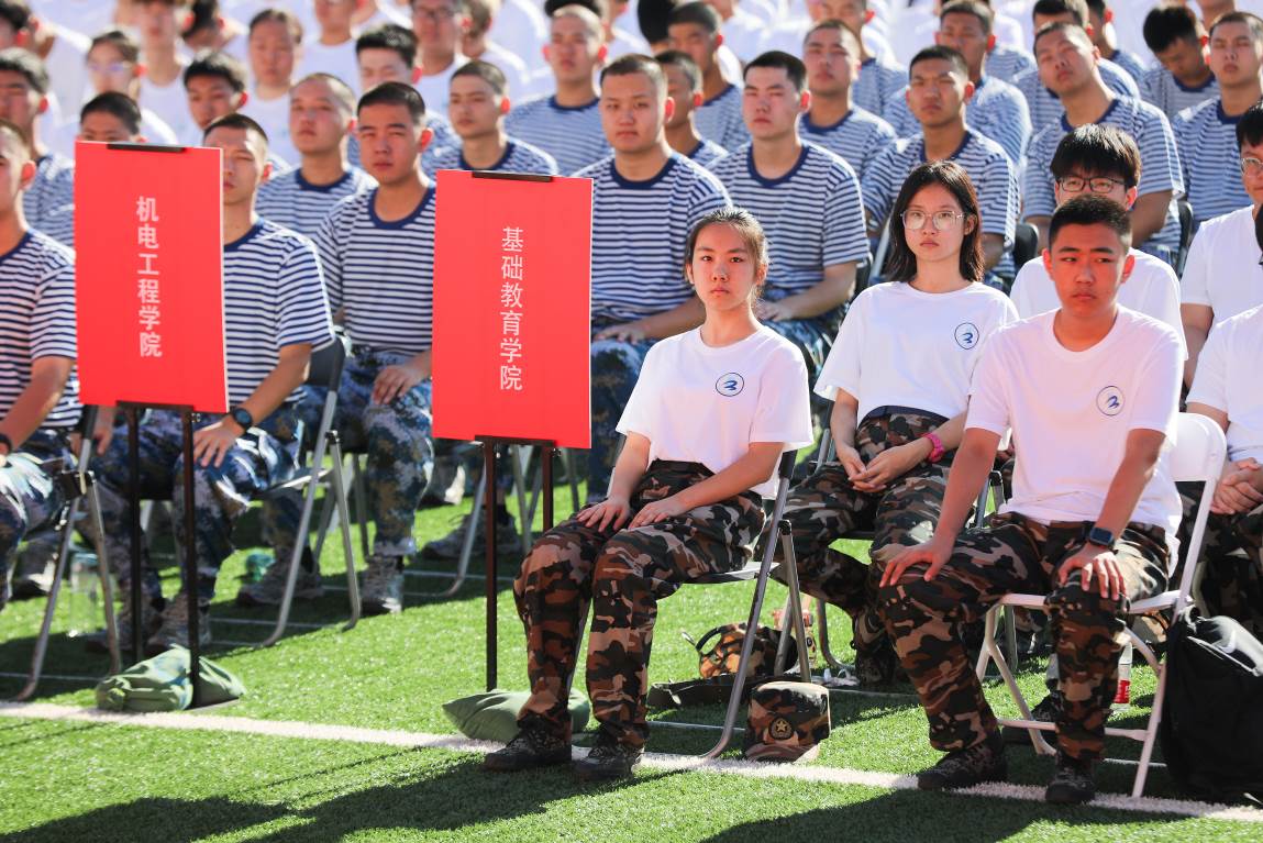 党委书记高喜军向军训团团长授旗,宣布新生们军训正式开营。从今天起,他们将在挥洒汗水、展现英姿的刻苦训练中,磨砺出坚毅的青春力量!