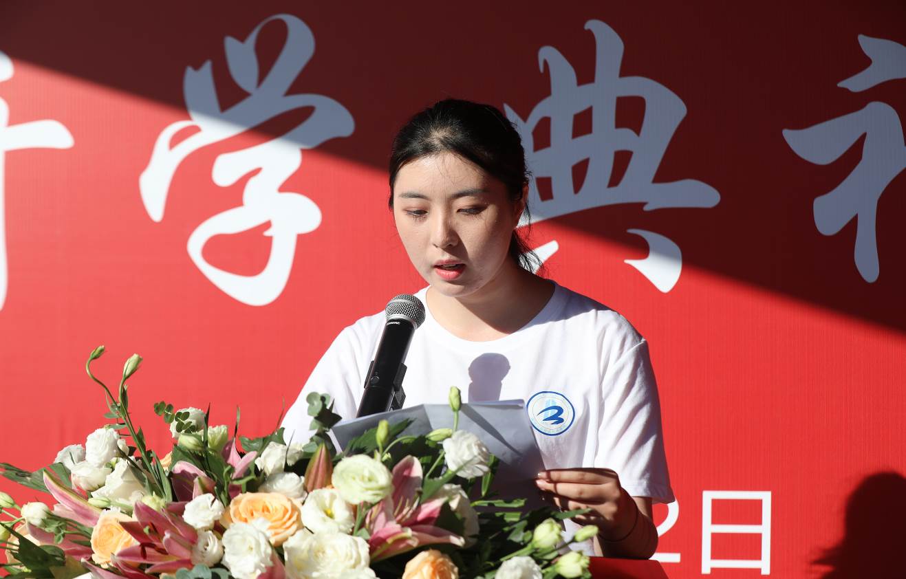 “今天,我们心怀对父母师长的感恩,对丰富多彩大学生活的无限憧憬,迈进北工院的校门。”文法与管理学院旅游管理2331班罗睿琪、基础教育学院贯通培养2303班王嘉颖作为新生代表发言。他们分别表示要尽快调整心态,规划好自己的大学生活,瞄准目标锲而不舍地追求;秉承工匠精神,充盈青春气度,努力成长为可堪大用、能担大任的新时代青年!