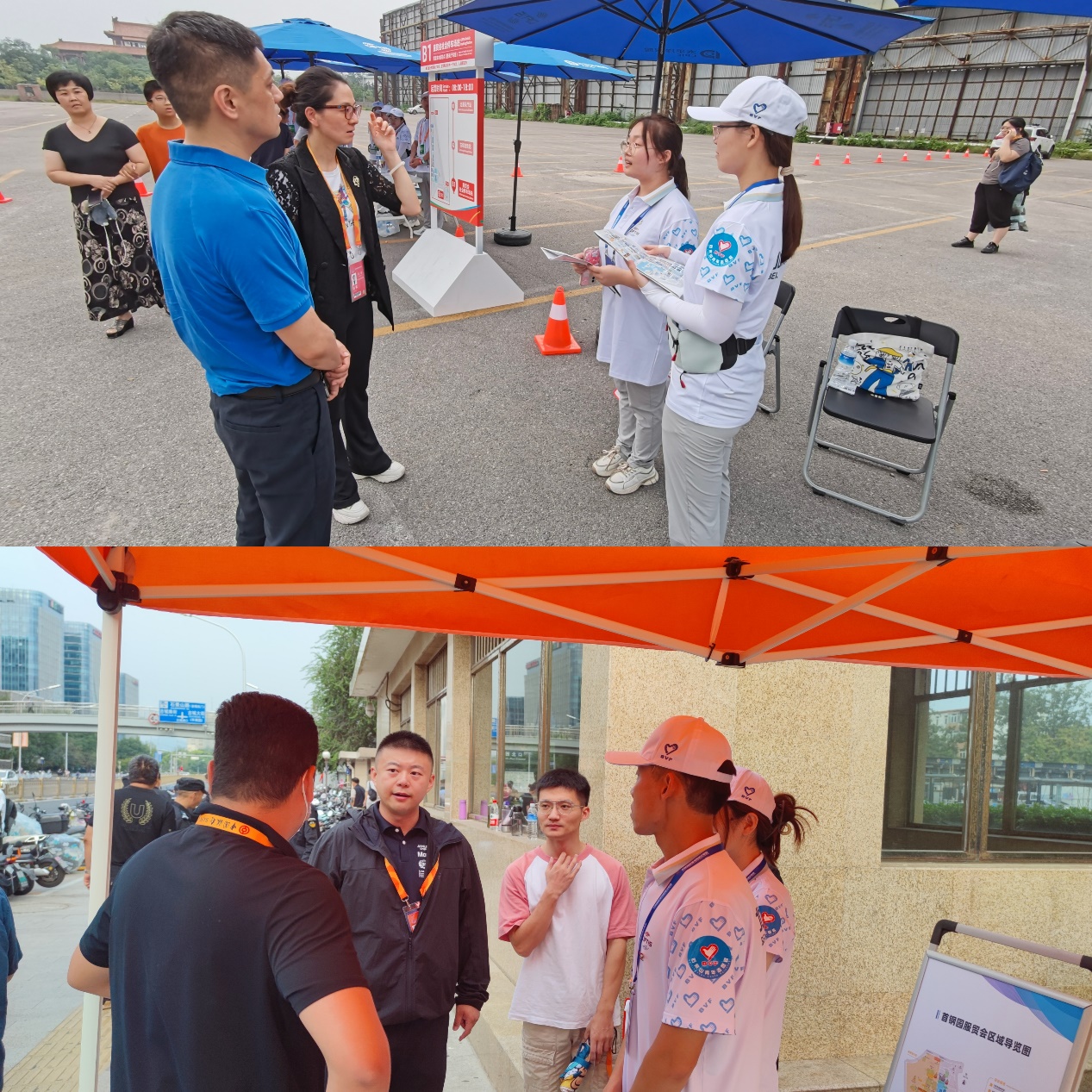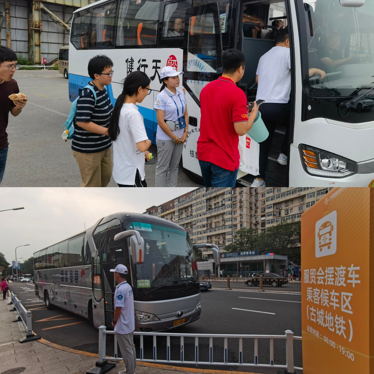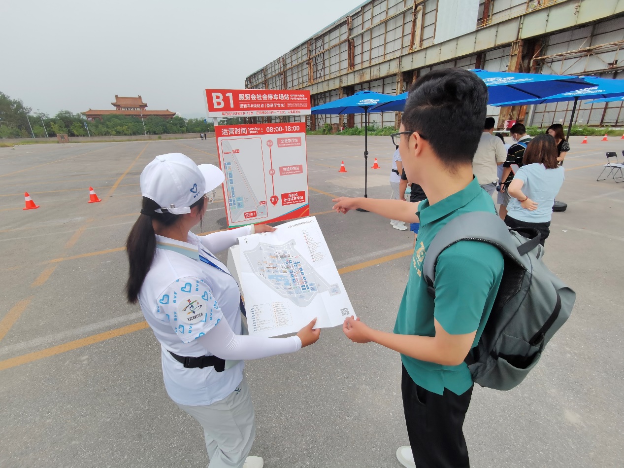 我校志愿者在服贸会首钢园区周边沿线P2停车场、北辛安地铁站和古城地铁站接驳车点位进行志愿服务,主要负责服贸会红线外人员引导、信息咨询、语言服务、文明宣传、应急救助、文化传播等多项服务保障任务,确保所有参展、参观嘉宾走出地铁站便走进服贸会。