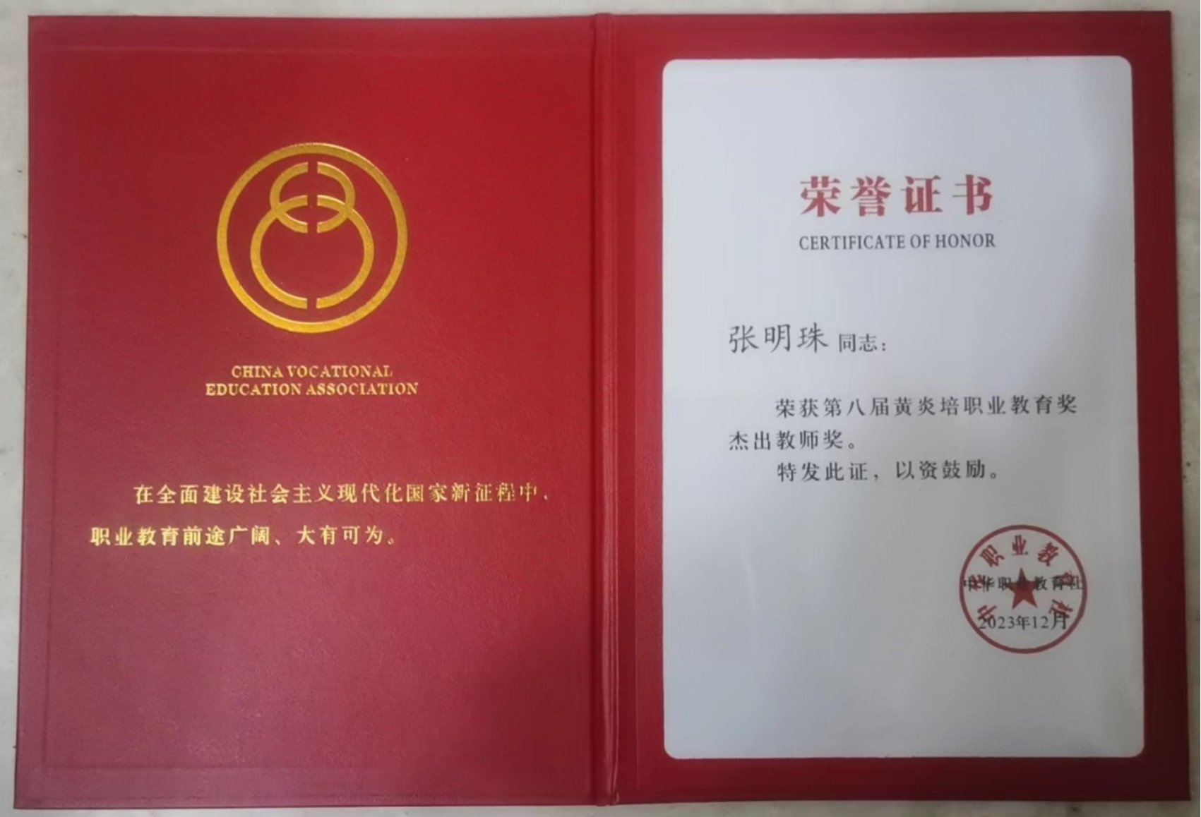 1月15日,在中华职教社组织的第八届黄炎培职业教育奖表彰大会上,我校机电工程学院教师张明珠荣获“第八届黄炎培职业教育杰出教师奖”。
