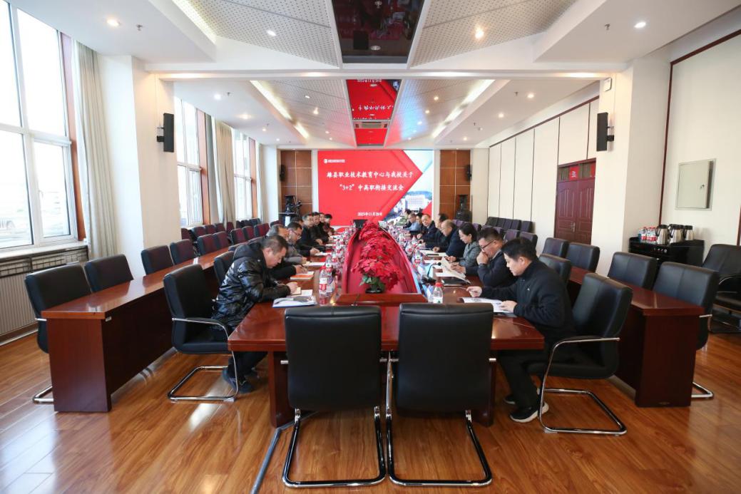 2023年11月28日上午九时,雄县职业技术教育中心副校长张友民、副校长常群良、办公室主任曾泽生及相关系部一行8人来我校交流访问。双方在匠心楼第四会议室召开关于“3+2”中高职衔接交流会。我校党委副书记魏晓东、党政办公室、教务处、招生就业处、继续教育学院、三个对接学院负责人参加了此次交流活动。会议由招生就业处处长贺继伟主持。