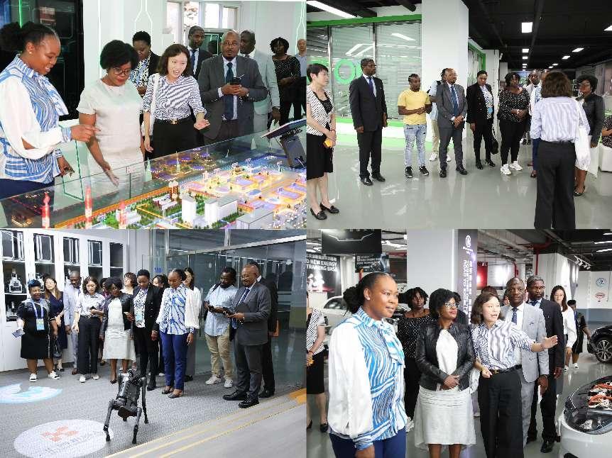 双方纷纷表达了对进一步开展教育务实合作与交流的共同愿景与殷切期望,希望能为两国教育事业发展注入新的动力和活力。恩卡巴内部长、亚伯拉罕斯部长等一行在周燕副院长的陪同下依次参观了中法能效管理应用人才培养与研究中心、汽车实训基地、智能网联实训室、数字化设计与制造中心、智能机器人技术应用中心以及讯飞AI工坊、360城市安全产业学院等,对我校理实一体化的教学模式和优质的实训条件给予高度赞赏和充分肯定。
