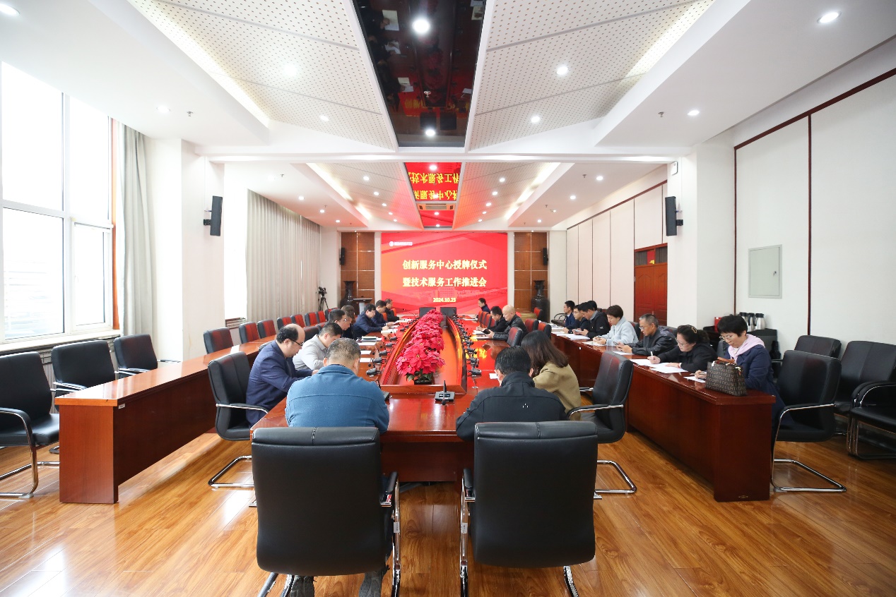 2024年10月25日,爱体育手机官方网站入口召开创新服务中心授牌仪式暨技术服务工作推进会,旨在总结前期科技创新与技术服务工作的成果,并对未来的创新服务中心建设和技术服务工作进行规划和部署。党委常委、副院长史运涛,11个创新服务中心负责人及教师代表参会。会议由牛小铁处长主持。