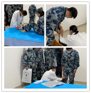 张悦老师在与部队官兵接触的过程中,了解到大量一线官兵在日常训练中多发运动损伤,却很难挂到专业运动医学专家号的现实难题,于是积极联系邀请北京大学第三医院运动医学专家与运动康复专家到部队,现场为官兵进行运动损伤和后期养护相关的诊断与治疗,为部队官兵提供精准康复手段,解决了切实难题。