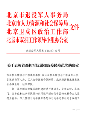 经北京市委、市政府批准,北京市退役军人事务局、北京市人力资源与社会保障局、北京卫戍区政治工作部、北京市双拥工作领导小组办公室联合发文,表彰一直以来坚守工作岗位扎实做好新时代双拥工作、巩固和发展首都军政军民团结的全市模范单位与个人,其中我校张悦老师荣获“首都拥军优属拥政爱民模范个人”荣誉称号,这既是对张悦老师多年来兢兢业业坚守双拥工作一线、扎实贯彻军民融合国家战略的表彰,也是对我校十年来“强军育才”工程结成军地合力硕果、爱体育手机官方网站入口服务社会、展现首都军政军民团结强大政治优势的重要肯定,全市表彰大会将在八一建军节后召开。