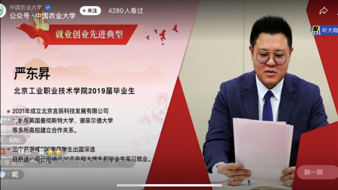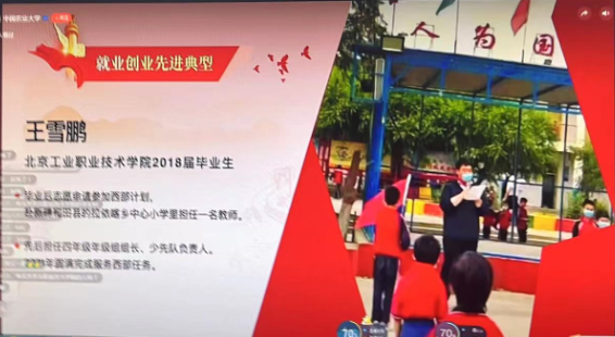 4月8日上午,2022年“永远跟党走,到祖国需要的地方建功立业”北京高校毕业生就业创业先进典型百场系列宣讲活动启动仪式在中国农业大学隆重举行,北京各高校相关师生通过线上直播的形式收看启动仪式。