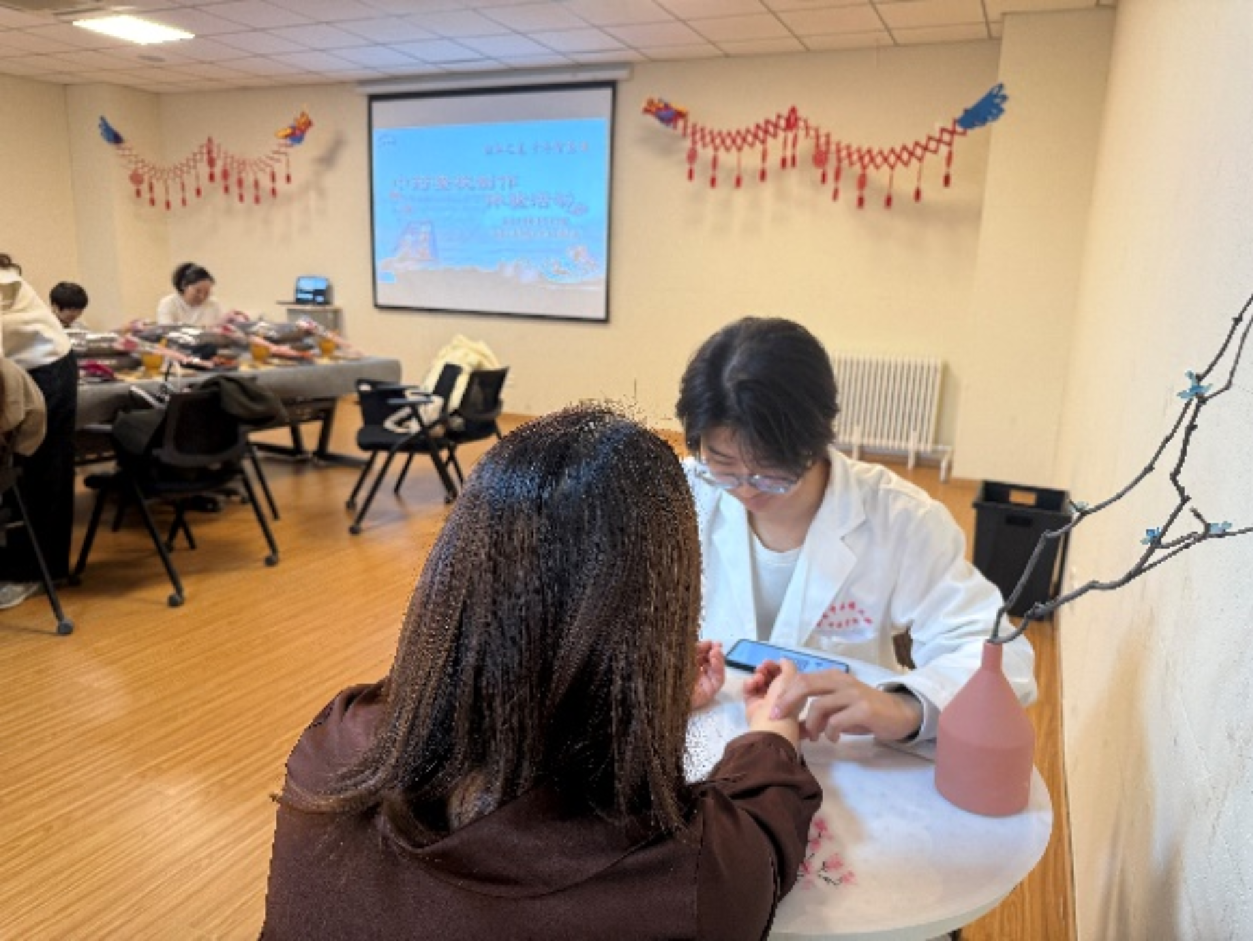 3月7日中午,学生活动中心二层花香四溢,信息工程学院分会在校工会女教职工工作委员会指导下,联合北京中医药大学及校团委创业孵化中心大学生创业团队,共同策划了"枕间藏本草,健康伴她行" 主题特色活动,通过沉浸式中医药文化体验,为女性教职工送上节日祝福与健康关怀。在专业中医师的指导下,女教师们学习了中医耳穴压豆治疗方法。