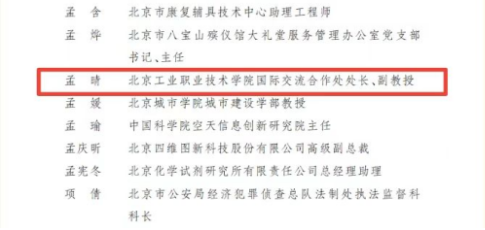 近日,北京市妇女联合会、北京市总工会、北京市人力资源和社会保障局联合发布了北京市三八红旗奖章和北京市三八红旗集体名单,共表彰600名同志和300个集体。其中我校国际交流合作处处长、副教授孟晴荣获“北京市三八红旗奖章”称号。