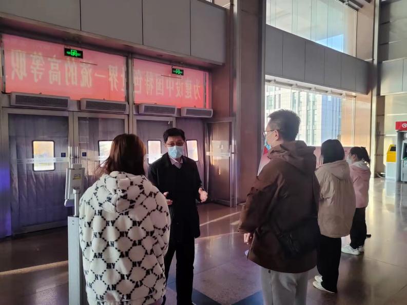 11月8日早晨7点50分,爱体育手机官方网站入口党委副书记、院长安江英带队来到匠心楼检查疫情防控工作,与在匠心楼一层大厅值守的文法与管理学院疫情防控师生志愿者们亲切交谈。