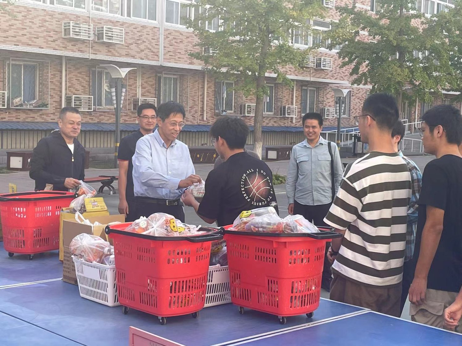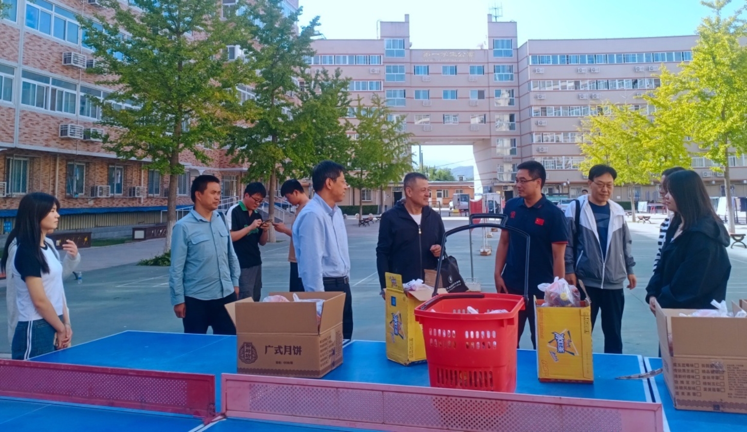 现场座谈之后,高书记给学生代表发放了月饼、饮料等节日慰问品,并送上节日祝福。高书记叮嘱同学们要共同营造干净、整洁的生活环境,同时要有效利用假期时间,做好时间规划,加强体育锻炼,过一个安全、欢乐、祥和的国庆假期。