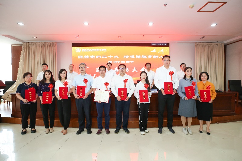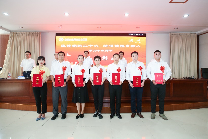 党委副书记魏晓东宣读了我校一年来荣获重大荣誉奖项教职工名单、我(我们)的育人故事榜样人物和优秀讲述案例教职工名单及光荣从教三十年教职工名单,并向他们表示热烈的祝贺。