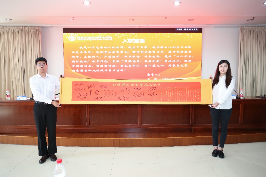2021-2022学年,爱体育手机官方网站入口迎来了一批新教师,爱体育手机官方网站入口为全体新教师举行了庄严的宣誓活动和师德承诺书、诚信承诺书签订仪式,引导新教师牢记“为党育人 为国育才”初心使命。党委常委、纪委书记张萌萌领誓,全体新教师庄严许下承诺。