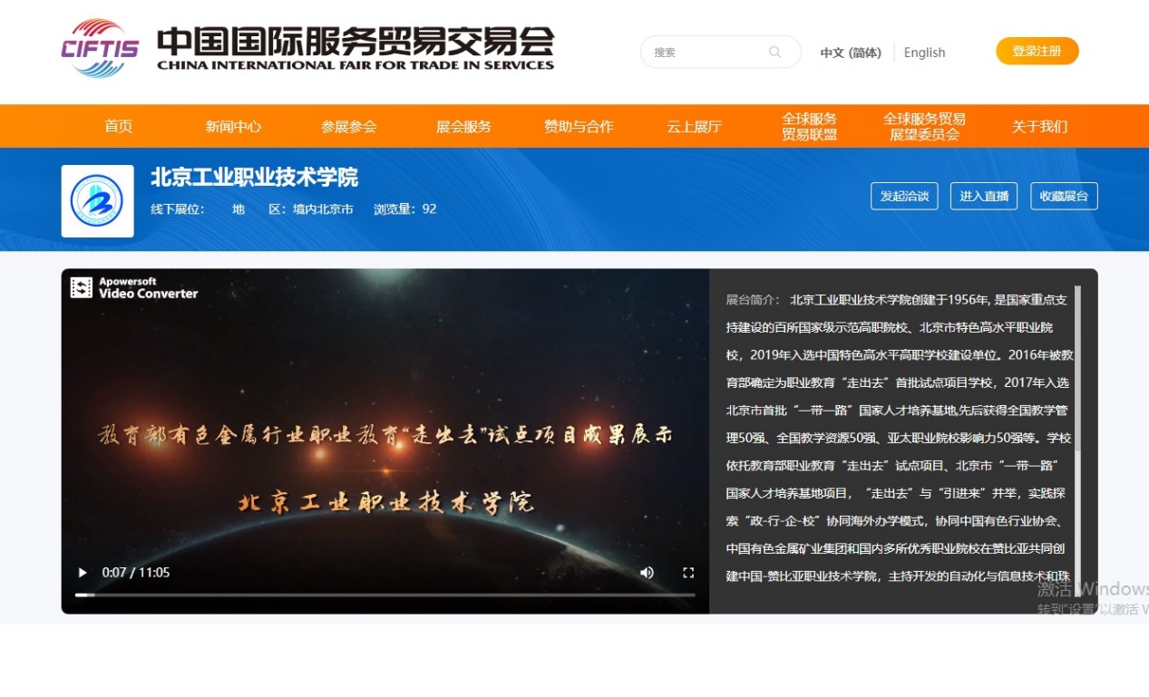 我校线上参展内容包括我校在职业教育“走出去”项目、海外办学、职业教育型孔子课堂、“一带一路”人才培养基地、留学生培养、贯通培养等方面所取得的成果,以及相关视频材料,宣传推介我校在教育服务贸易领域的发展特色、创新举措,为教育国际服务贸易发展提供方案和借鉴。