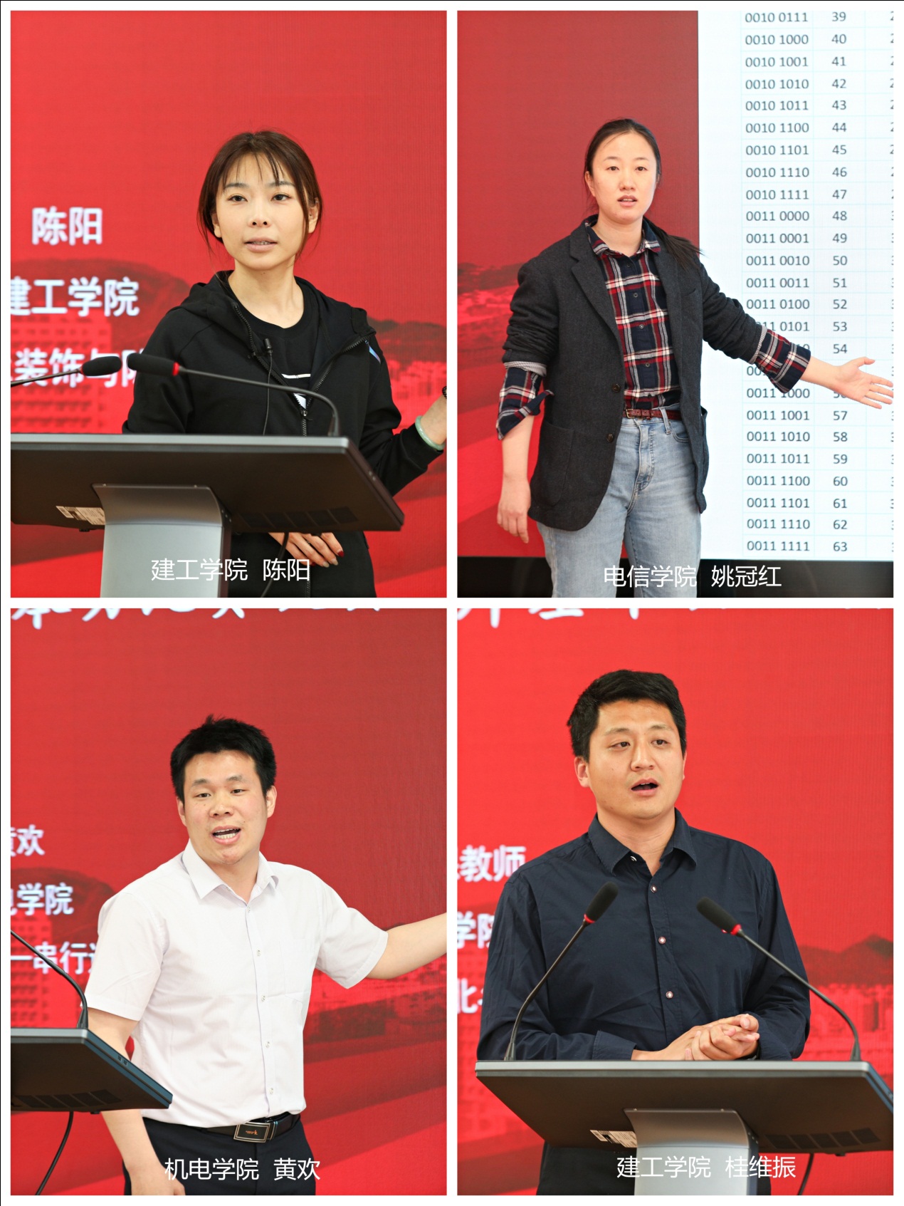 经过比赛,最终电气与信息工程学院姚冠红获得工科组一等奖,基础教育学院加春燕获得文科组一等奖;机电工程学院黄欢、建筑与测绘工程学院陈阳、桂维振,马克思主义学院许杨帆,文法与管理学院昌伟伟、段宏毅等6位老师获得二等奖;机电工程学院王俊、基础教育学院王素雅、建筑与测绘工程学院李静、电气与信息工程学院许鹏、体育部郝泽亮、贾一等6名老师获得三等奖。