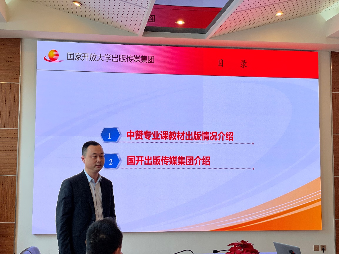 接下来国开出版传媒集团职业教育事业部赵杰主任就中赞职院北工院分院第一批专业教材出版情况做了详细的介绍并对教材编写提出指导意见。赵主任表示,国开出版传媒集团将为各位编写老师提供周到、全方位的服务,保障第二批专业课教材及工业汉语教材顺利出版。