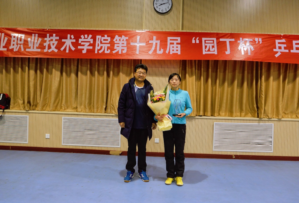 党委副书记、院长安江英为女子单打比赛冠军颁奖