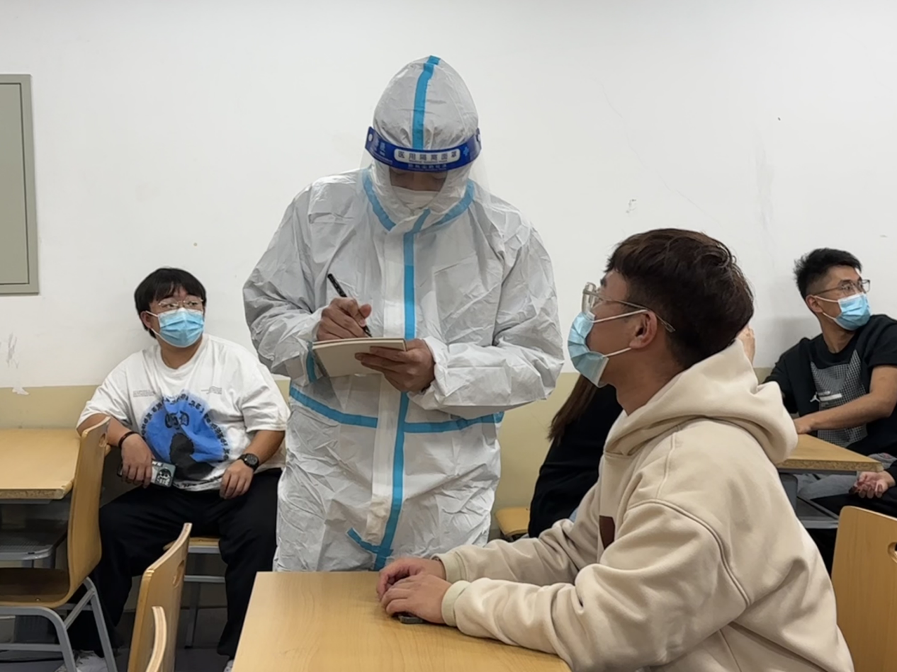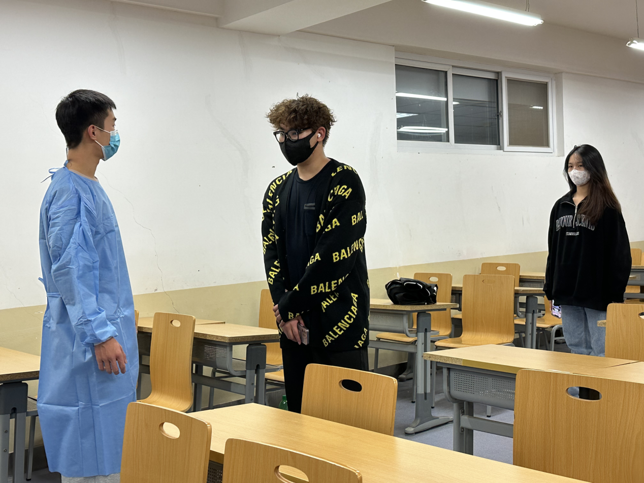 11月9日晚自习时,志愿者们提前进入演练教室为演练做好准备。晚上8:00活动正式开始,应急演练主要模拟了工作人员按照要求对学生进行身份核验、体温检测、信息登记等,以及在不同场景下学生出现体温异常时,学院疫情防控工作小组全过程处置流程。其次还模拟了流调工作,流调信息包括:收集个人信息、校外活动轨迹、返校方式以及重点描述校内活动轨迹等四个方面。演练全程志愿者均严格做好自身疫情防控措施。
