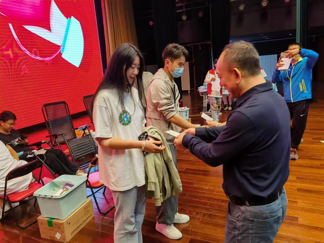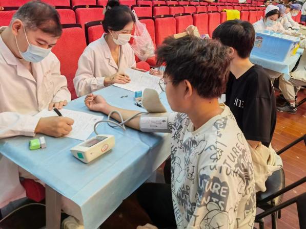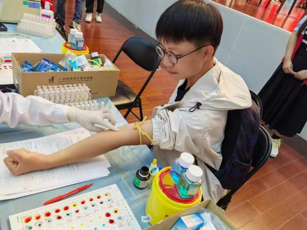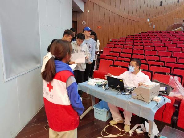 我校学生志愿者全程协助医护人员做好人员组织工作,志愿者引领大家有序地排队伍进行登记、填表、采血、化验等一系列流程,认真听取医务人员讲解献血过程中的注意事项,待检测合格后开始献血,各项程序有条不紊地进行。