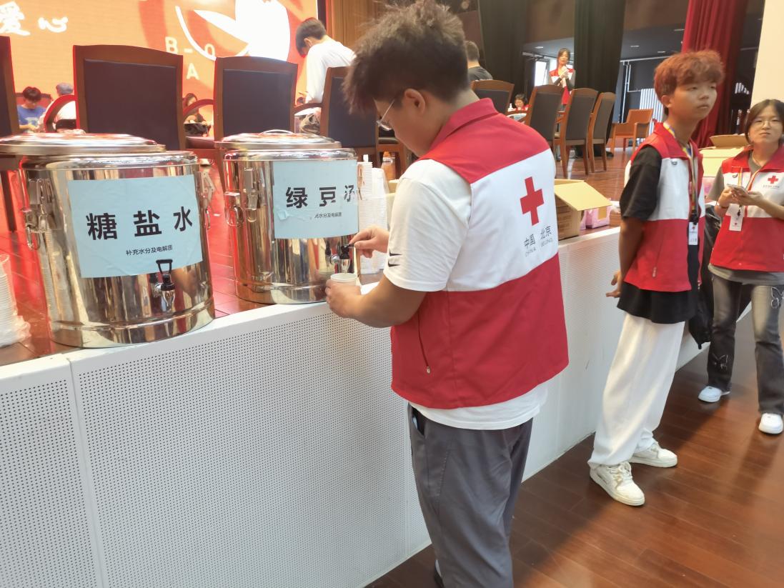 完成血液采集后,志愿者们将他们引领到休息区,并贴心为他们递上糖盐水、小蛋糕等食物,补充体力。