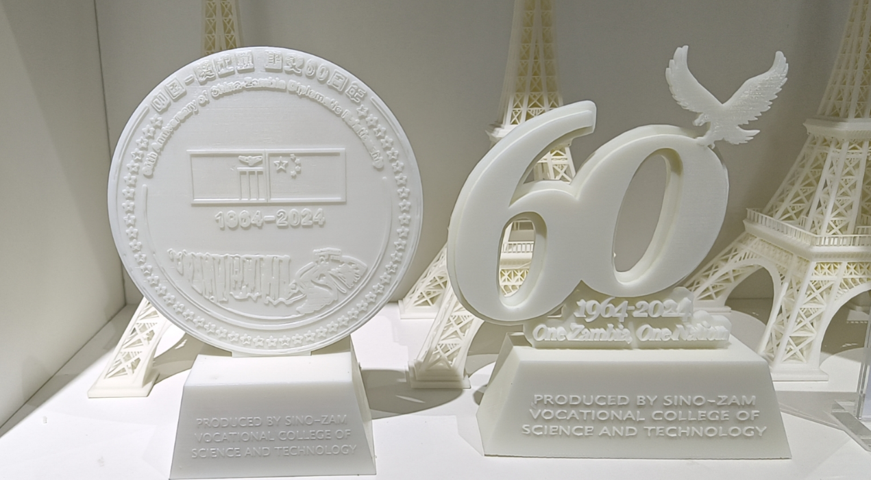 我校机电工程学院3D打印团队受主办方委托对“中赞建交60周年”会标进行3D建模并独立制作,经过多次改良最终成型,得到了主办方和赞比亚总统希奇莱马的高度认可。我校党委副书记、院长柳长安亲自向主办方移交了3D打印礼物,中色卢安夏铜业有限公司党委副书记、纪委书记、中赞职院常务副院长黄荣满代为接收了外事礼品。