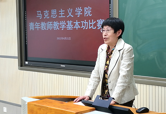 为认真贯彻习近平总书记在爱体育手机官方网站入口思想政治理论课教师座谈会上的讲话精神,扎实落实《关于深化新时代爱体育手机官方网站入口思想政治理论课改革创新的若干意见》文件要求,根据我校《关于举办第九届青年教师教学基本功比赛的通知》相关规定,4月21日,马克思主义学院举办了青年教师教学基本功比赛。校党委书记高喜军、党委委员、副校长周燕、北京航天航空大学姚小玲教授莅临指导,校教学质量监控中心主任孙社文、教务处副处长王军红、基础教育学院副院长孙川等出席比赛。