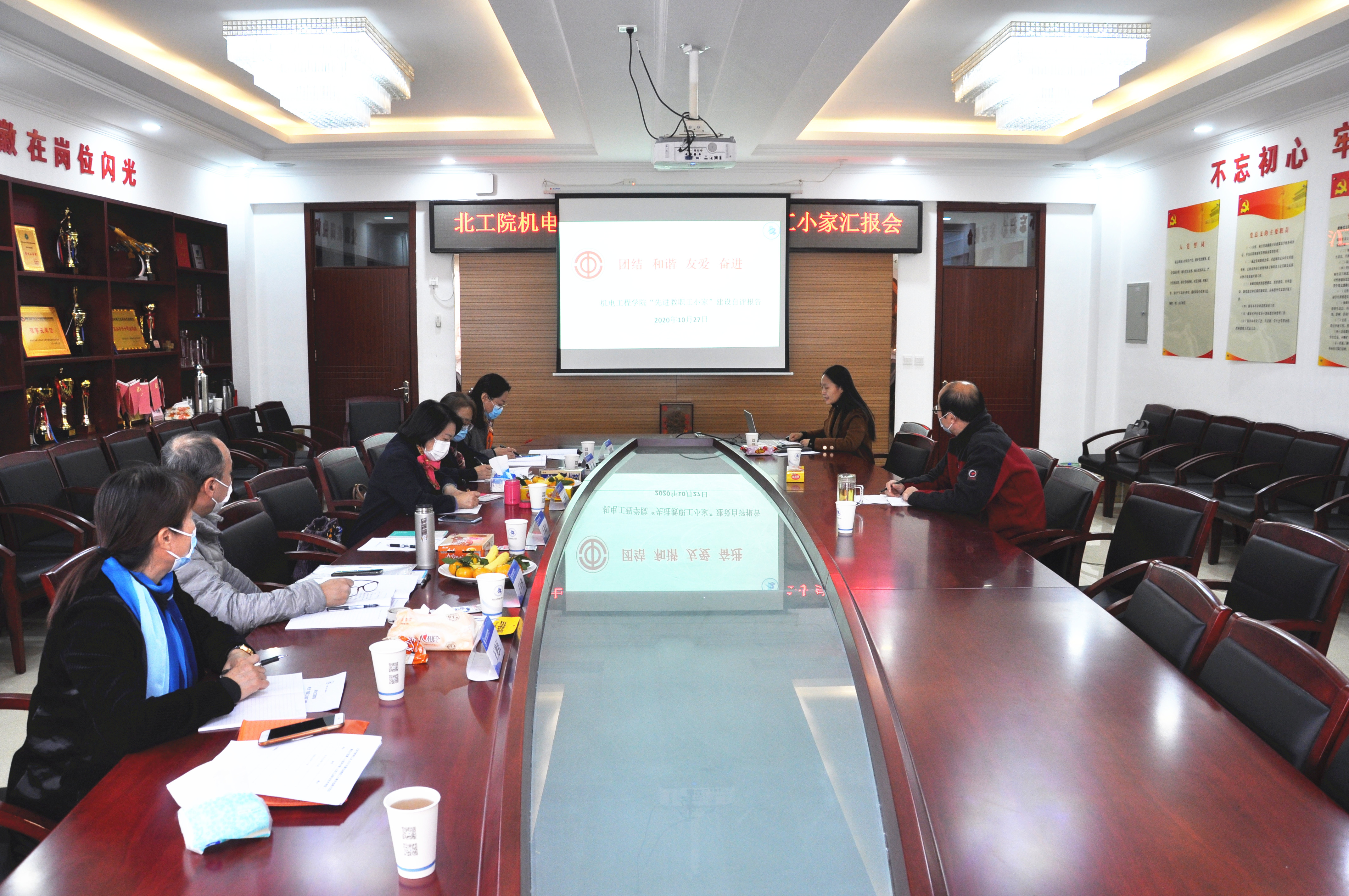 机电分会和后勤分会分别以PPT形式进行了职工小家建设专题汇报,图文并茂,生动地展示了各自建设职工小家的过程和工作亮点。随后专家组实地察看了机电分会和后勤分会职工小家的活动场地和设施设备,查阅了两个职工小家在积极推动民主政治建设、依法维护教职工权益、加强教职工队伍建设、加强工会自身建设、开展送温暖和文体活动等方面的材料。